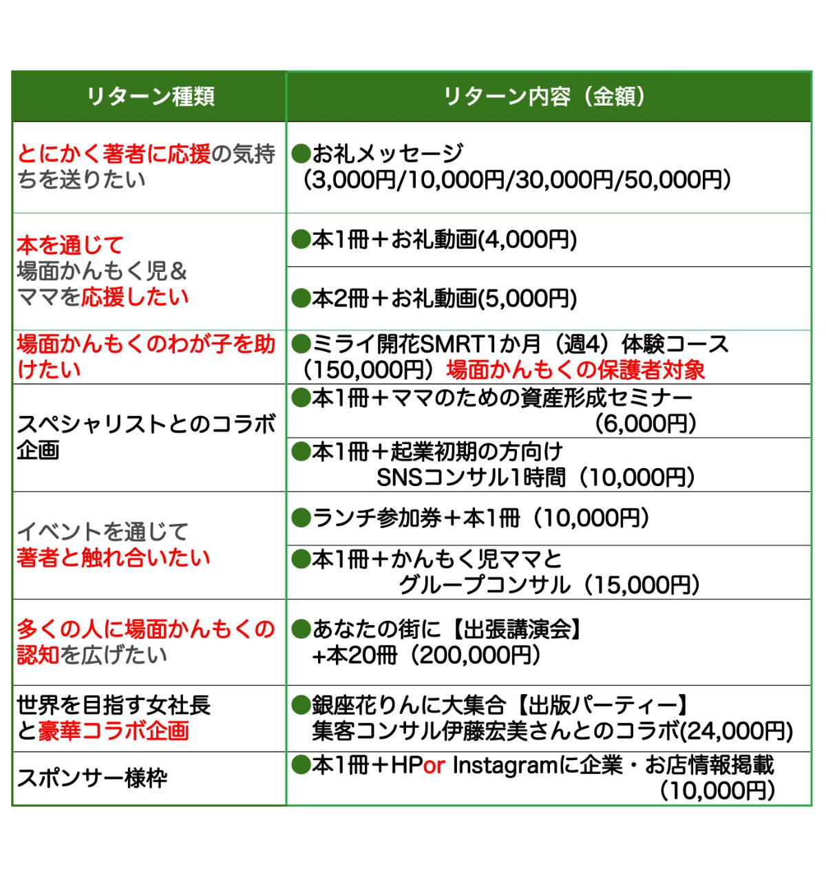 【リターン一覧表】