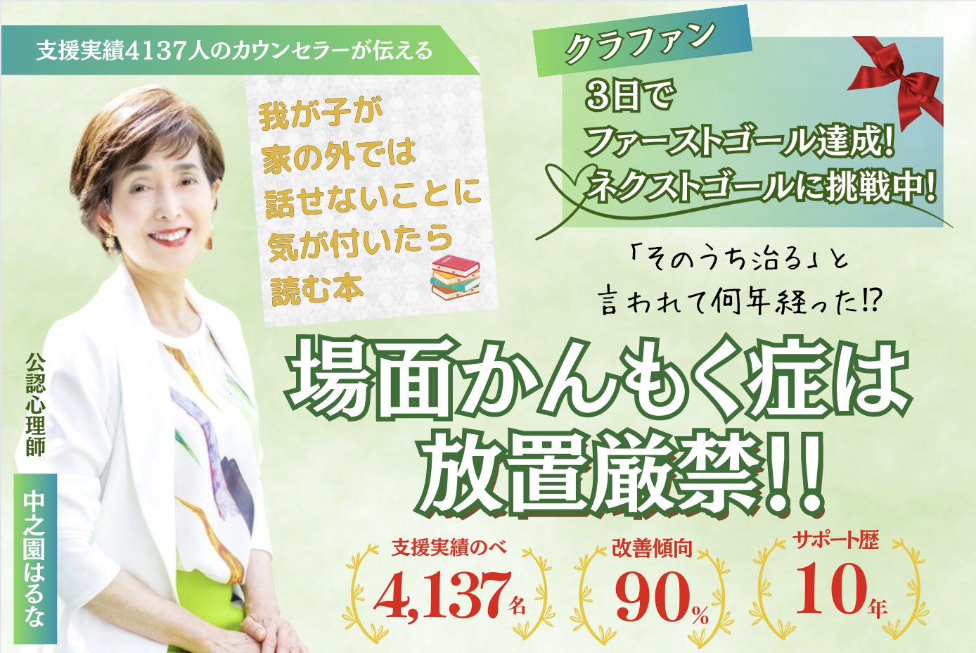 その後、場面緘黙の改善には、行動療法にエビデンスがあることを知り、保護者向けのわが子の場面緘黙改善トレーニング【緘黙ペアレントトレーニング】を構築しました。