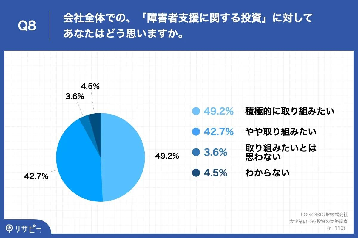 しかし、上場企業はESG 投資(環境や社会、公正な経営を大切にする会社にお金を投じて、未来をよくする投資方法)に対する意欲が高まっており、特に「障がい者支援に関する投資」にも関心が高いことが分かっています。