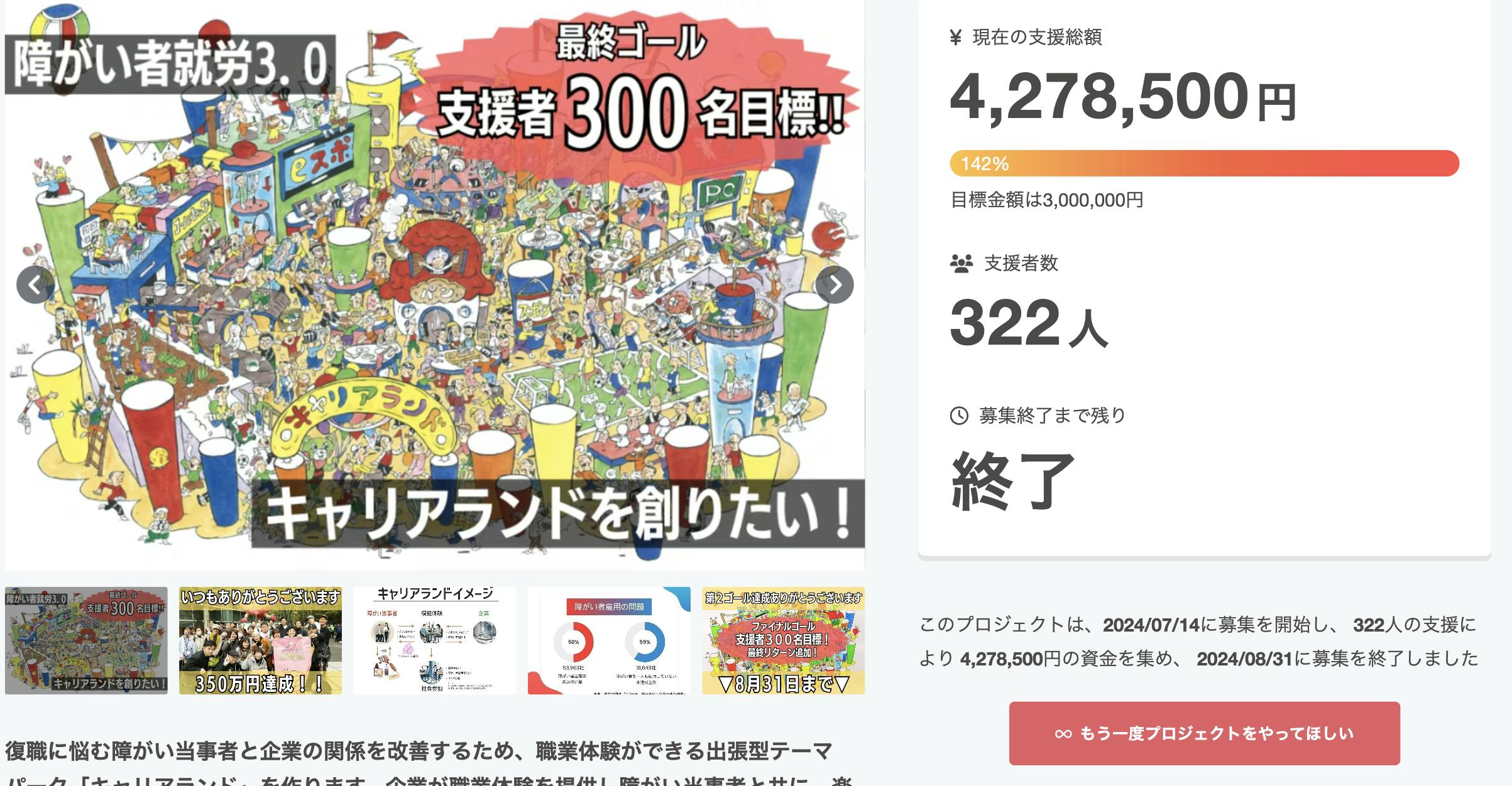 支援金額…4,278,500円(142%)