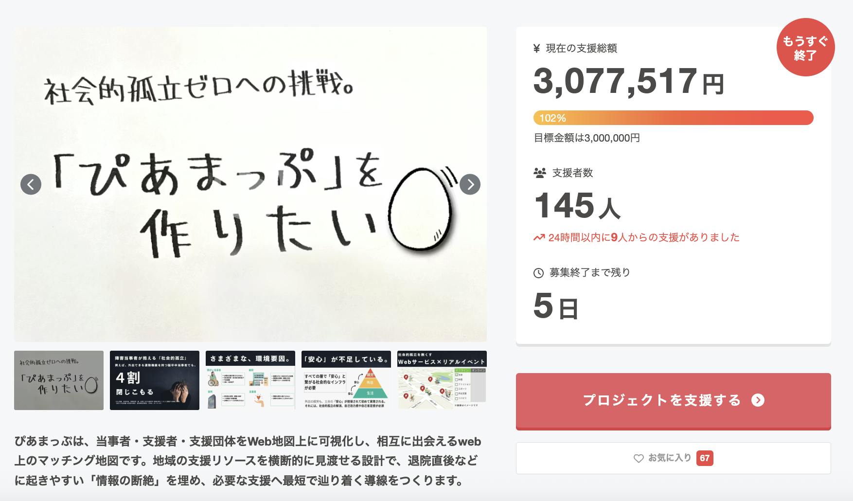 このたび、新たに挑戦している「ぴあまっぷ」クラウドファンディングが、おかげさまで目標金額300万円を達成いたしました。