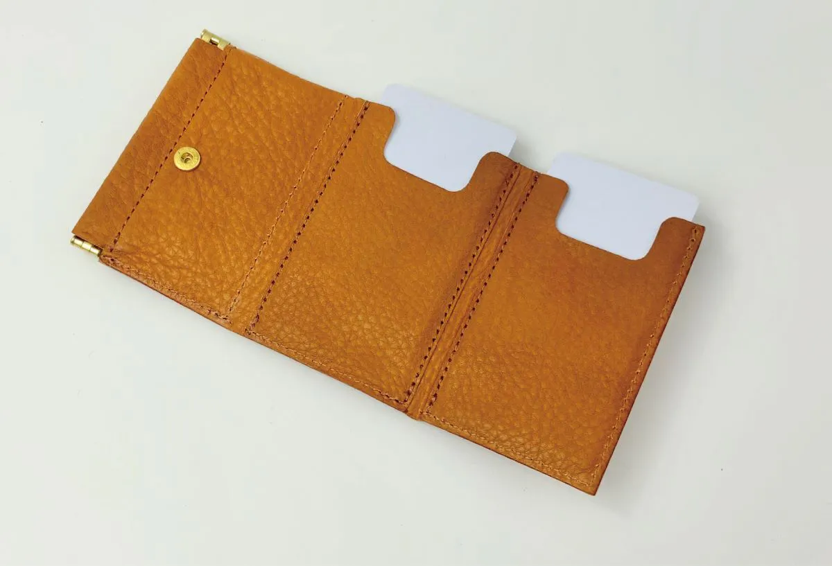 窮屈すぎるとお札が入れにくかったり、折れたりしてしまいがちですが、余裕があることで出し入れしやすくしました。