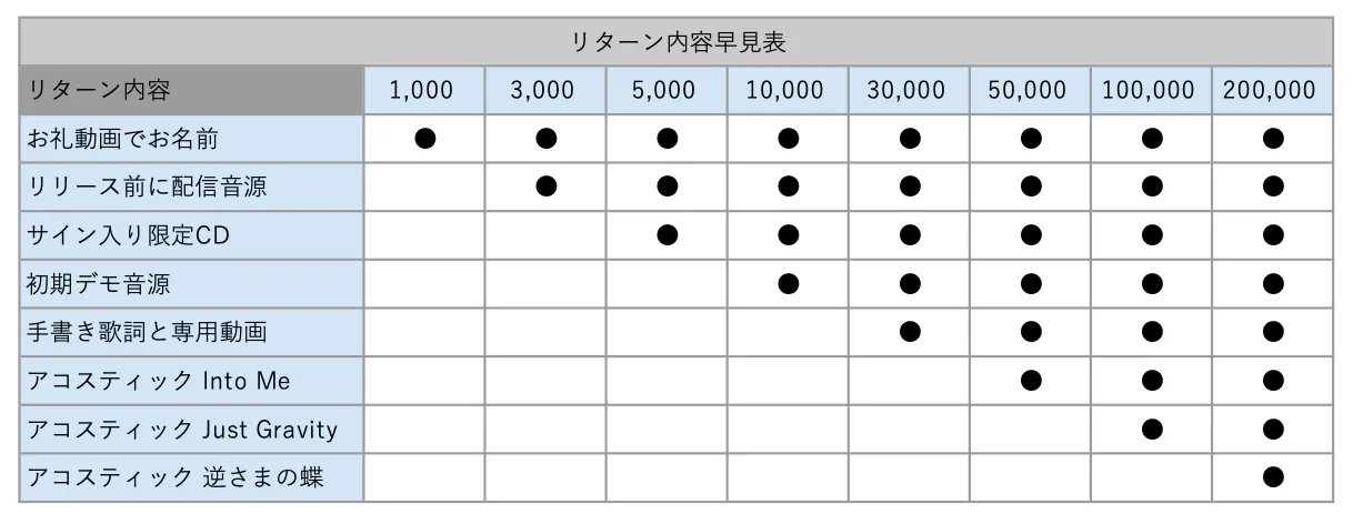 このプロジェクトに参加してくださった皆さまに特別な体験を提供するため、私なりのリターンを用意しました。特に、デモ音源の配布は初めての試みです。私はデモを作り込むタイプではないため、完成品とは大きく異なる「生まれたての曲」をお楽しみいただけると思います。歌詞やアレンジ、時にはキーやメロディが変化し、作品が完成に向かっていく過程を知ることも、皆さまにとって楽しい体験になると考えています。