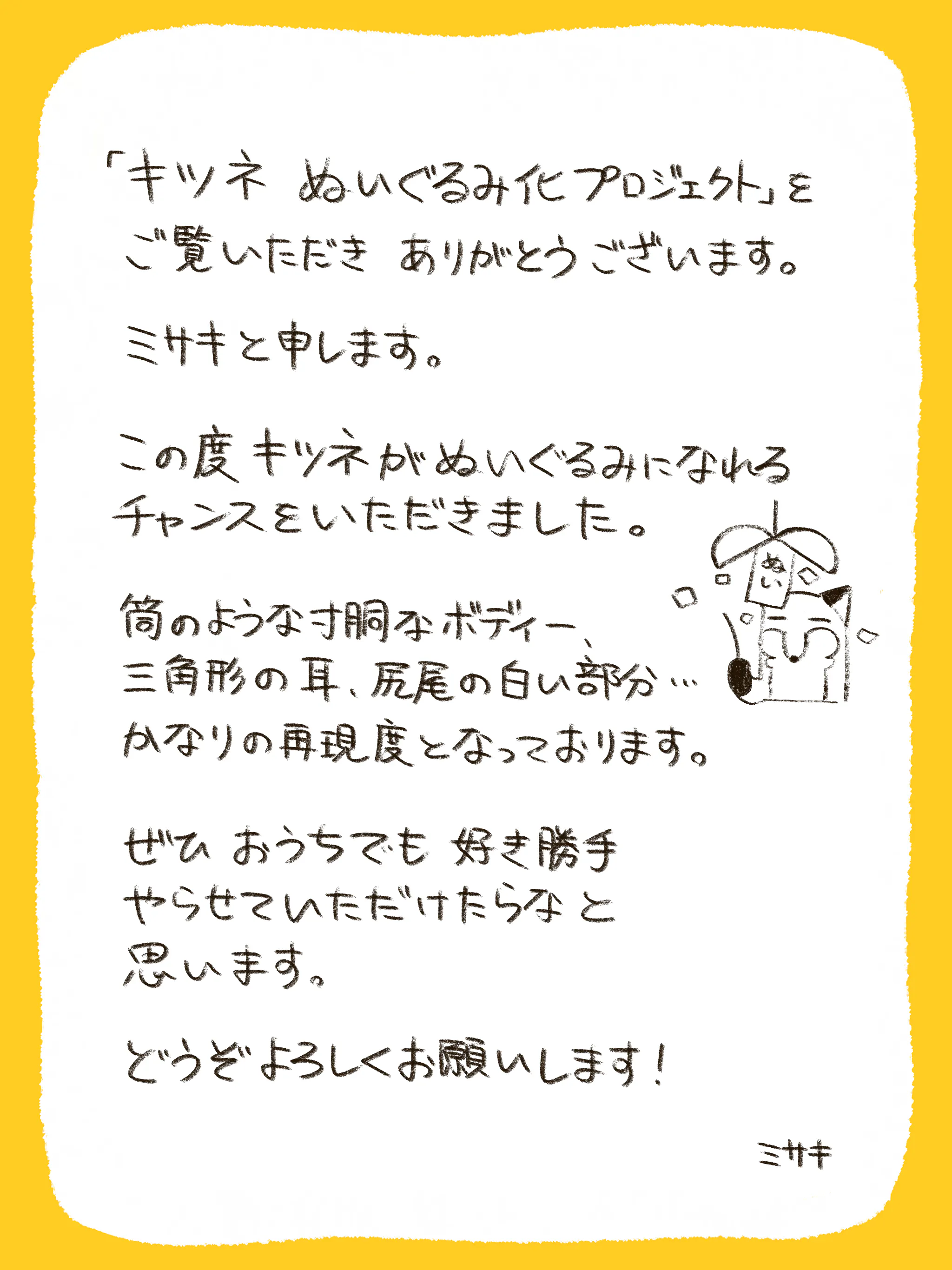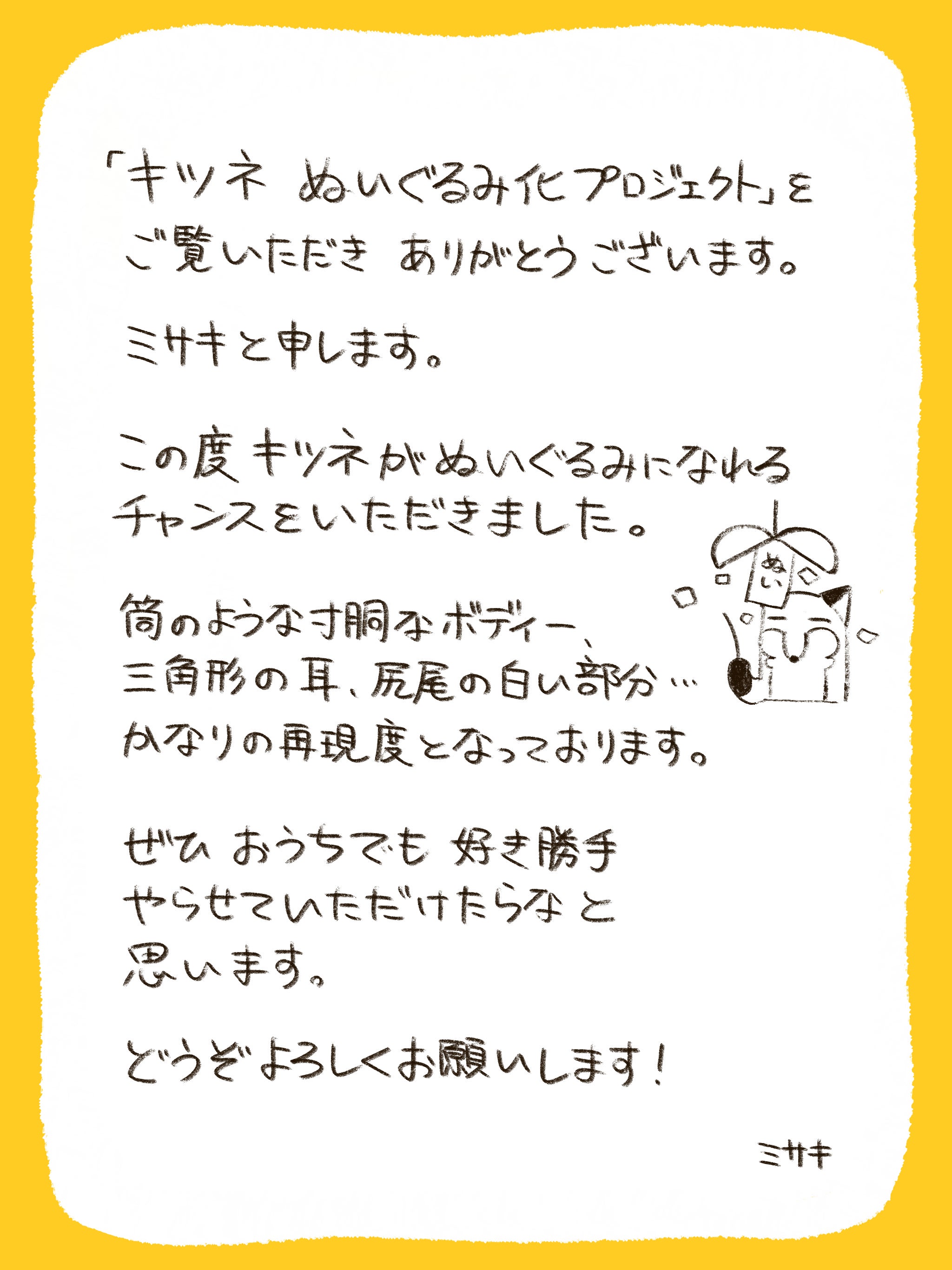 イラストレーターミサキの描く「キツネ」が初のぬいぐるみ化に挑戦します!