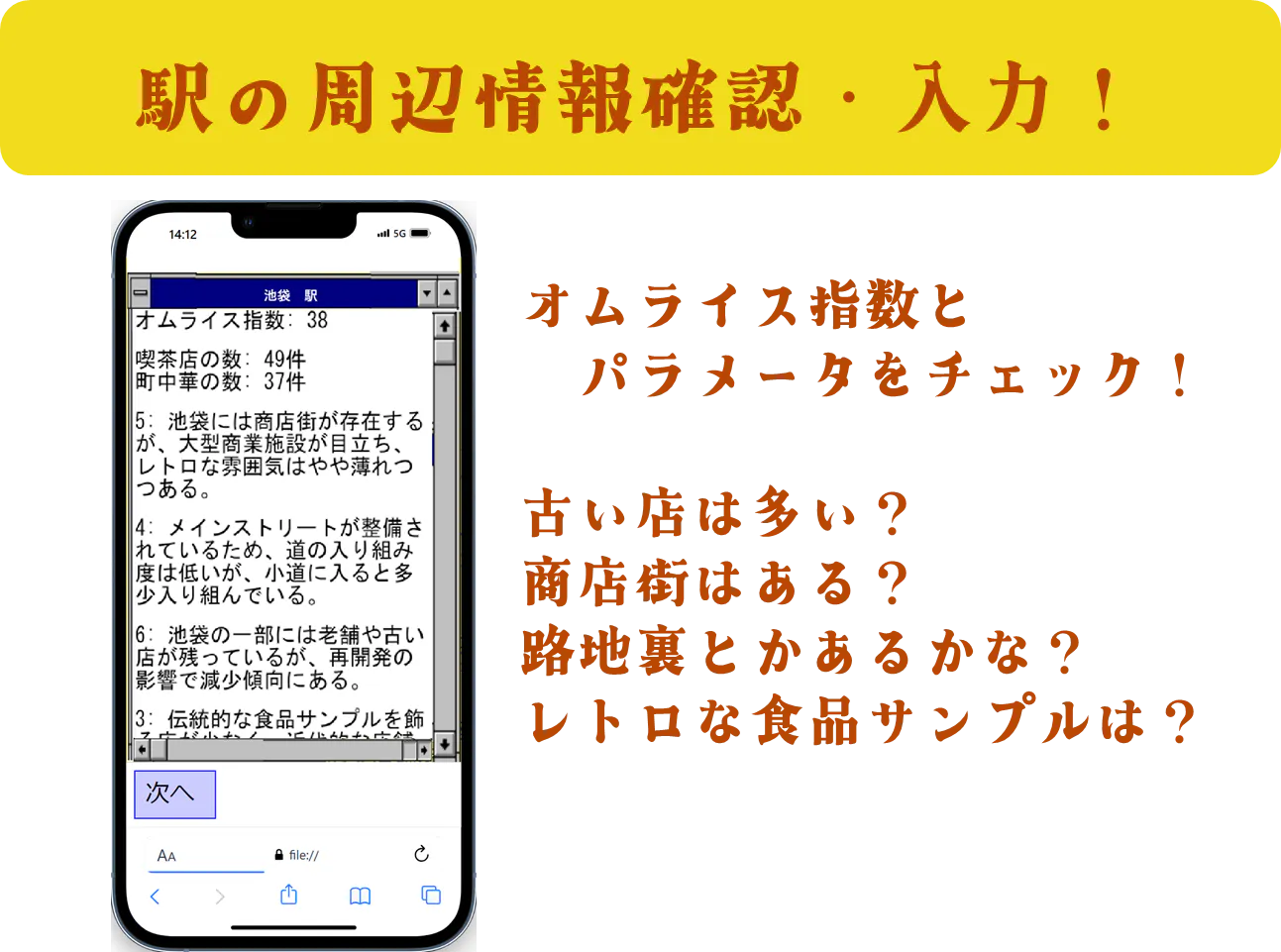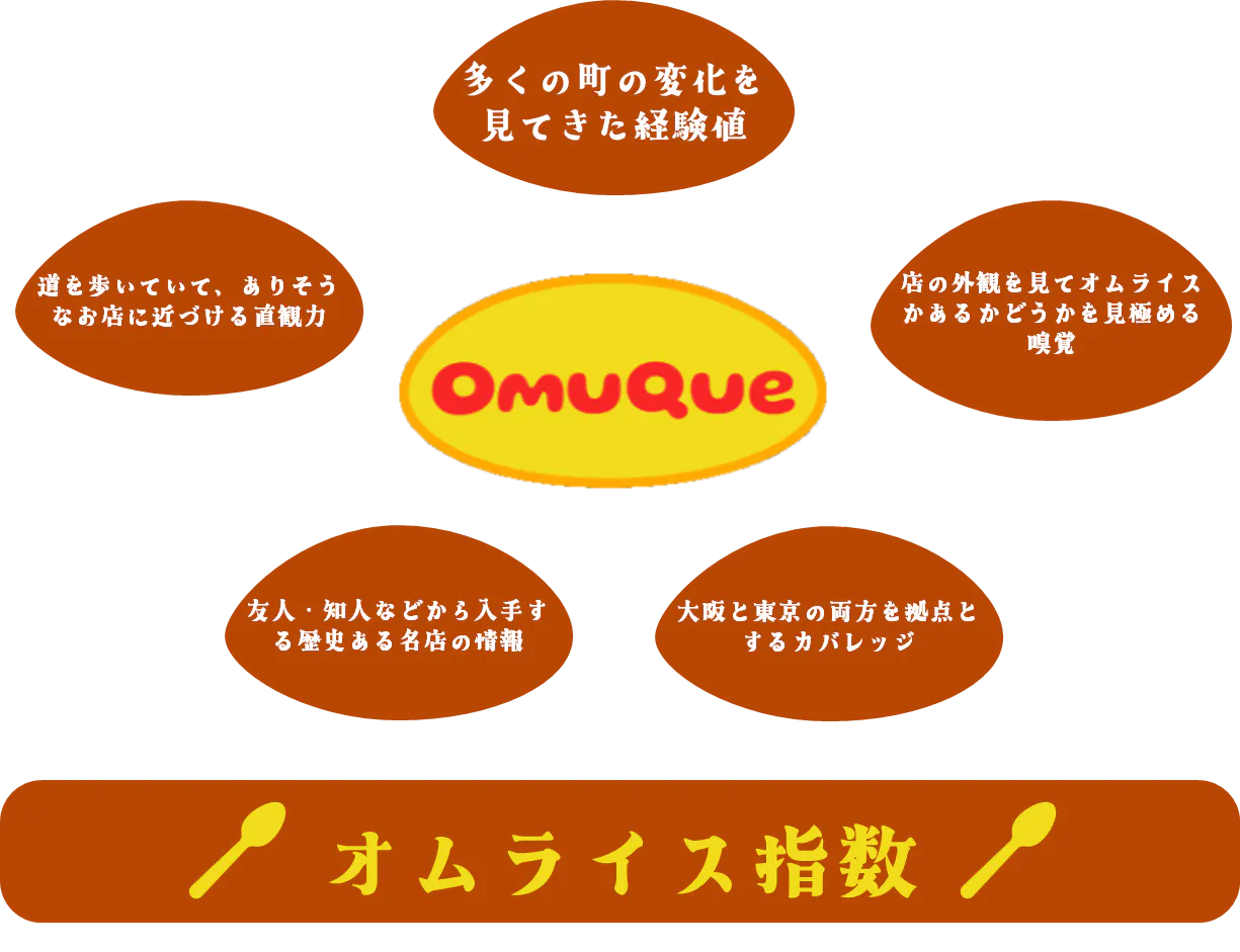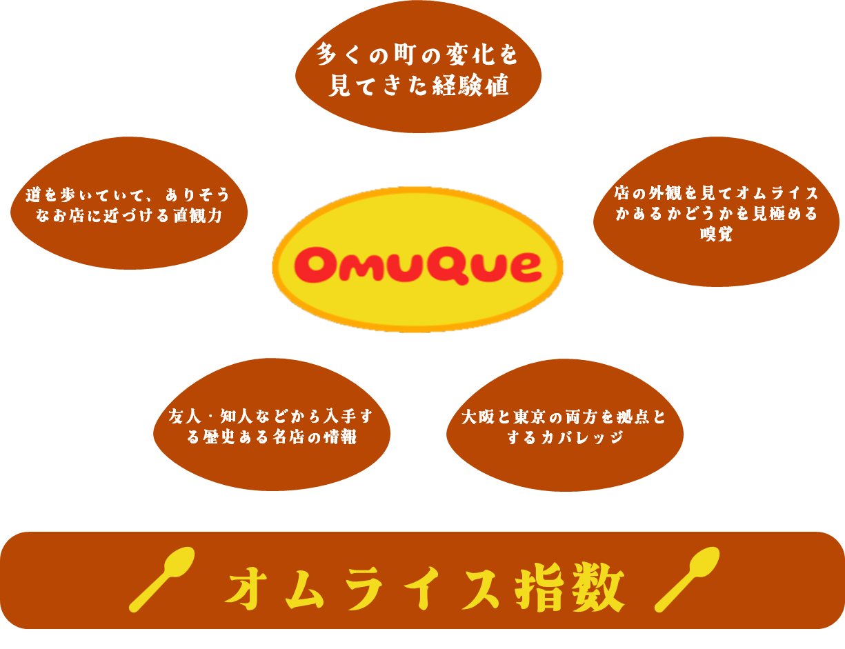 その経験から、オムライスに辿り着きやすい場所の特徴を見出し、それを数値化したものが『オムライス指数』です。