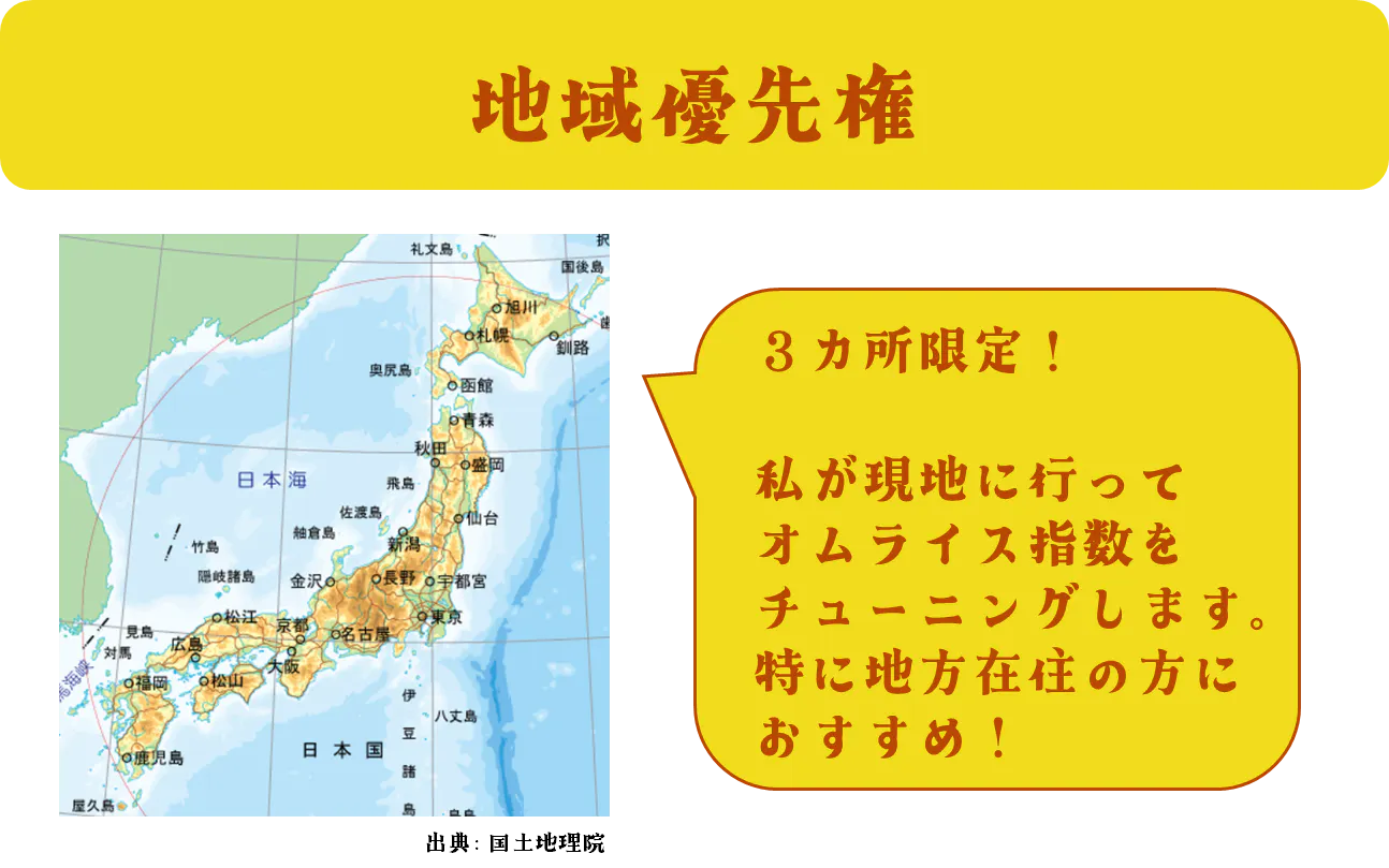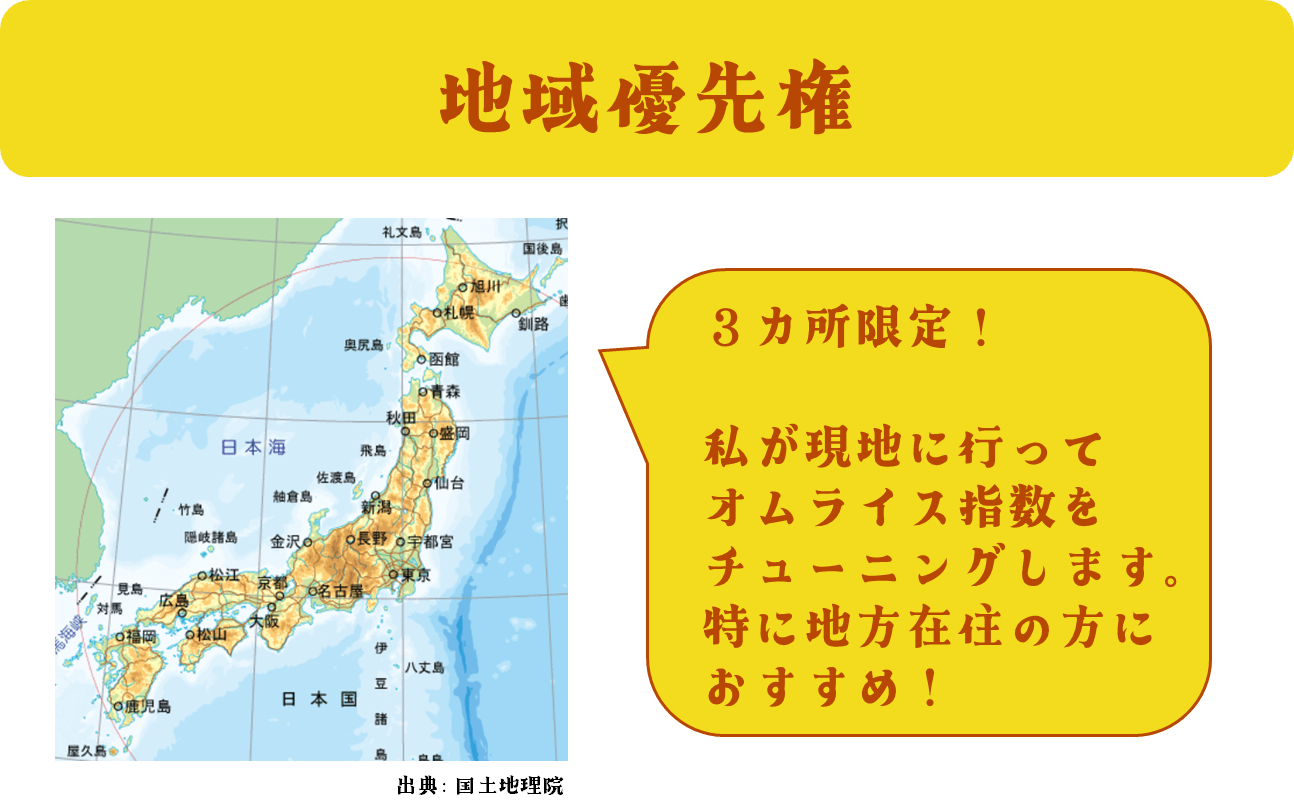 お礼と共に、その方の地域でおすすめの場所のオムライス指数をご提供します。