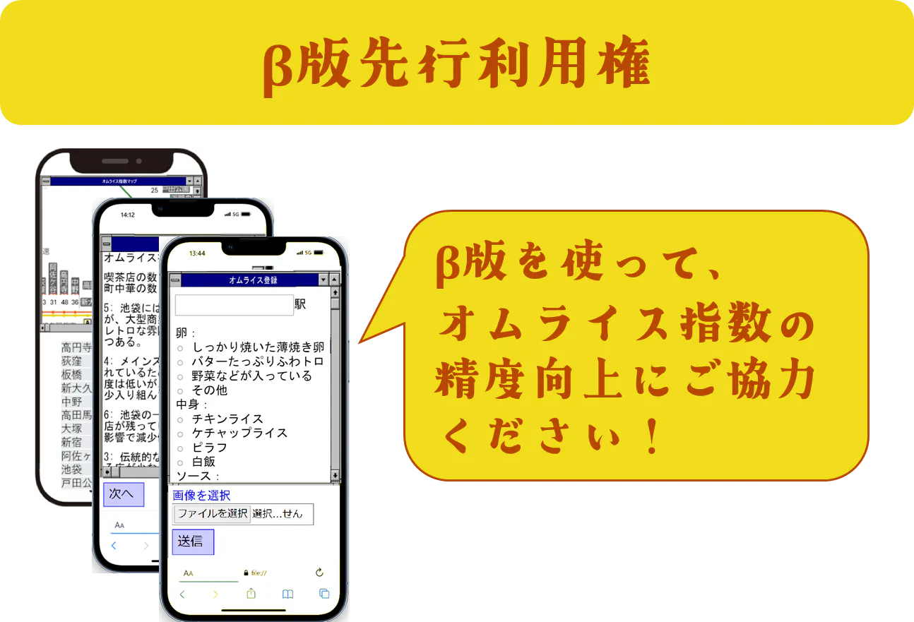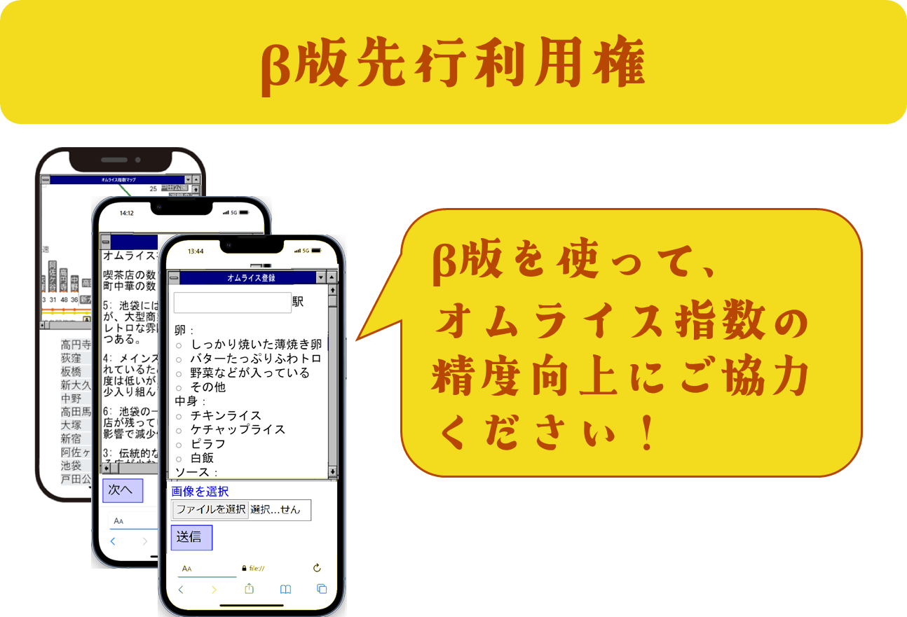 先行して駅の情報やオムライス情報を投稿頂き、開発にご協力ください。