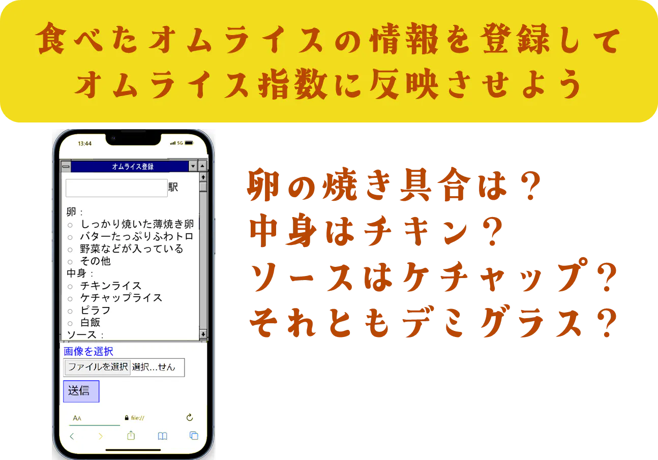 その場所にオムライス探索に出かけて、その結果をメール返信いただければ、協力者として、お名前をアプリのクレジットに掲載します。