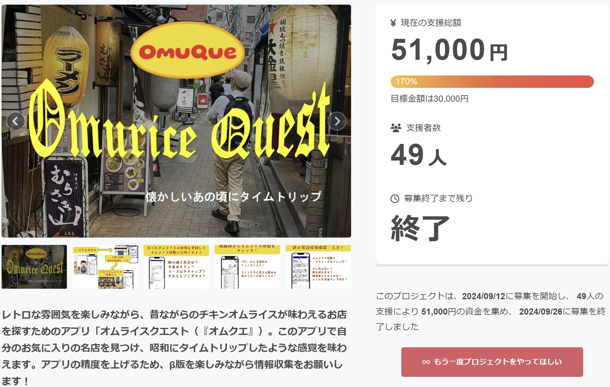先ほど0時を持って、オムクエのクラウドファンディングは終了しました。