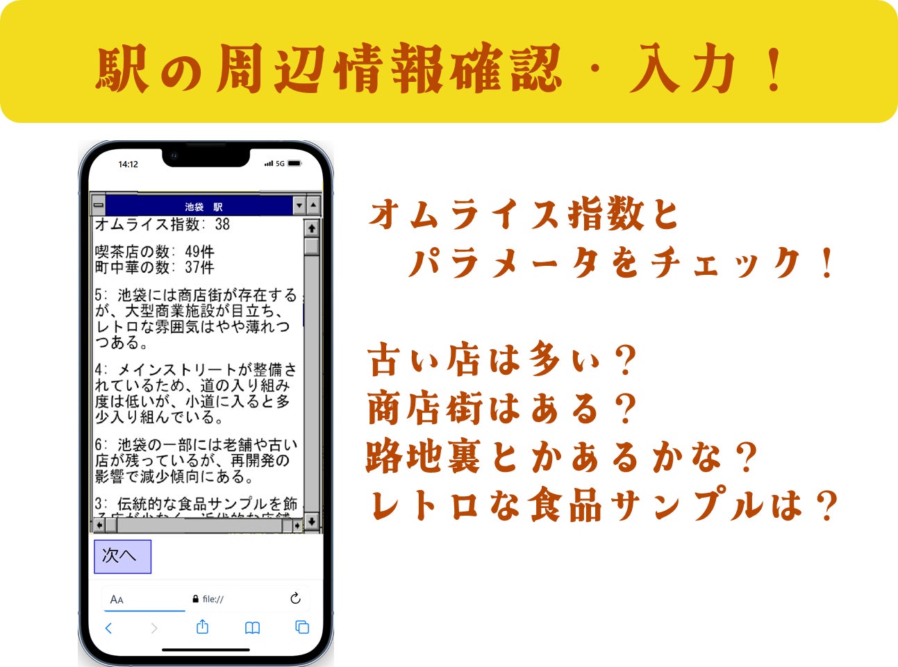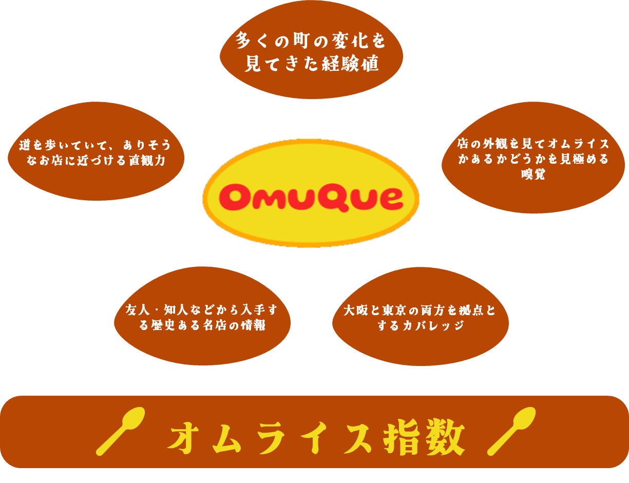 その経験から、オムライスに辿り着きやすい場所の特徴を見出し、それを数値化したものが『オムライス指数』です。