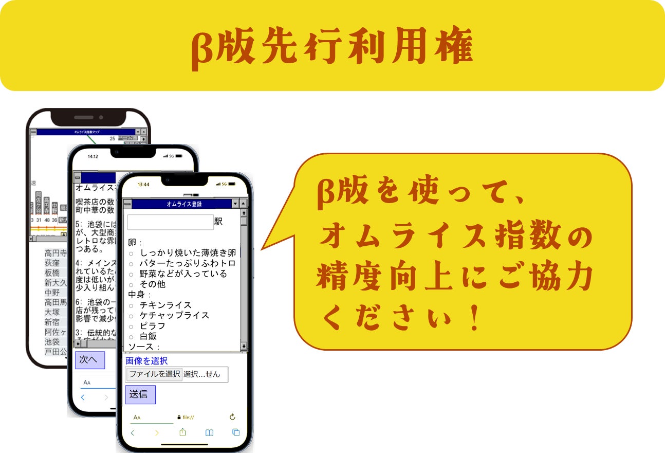 先行して駅の情報やオムライス情報を投稿頂き、開発にご協力ください。