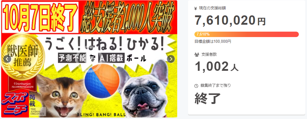 「もう一度プロジェクトをやってほしい」という皆様のご期待に応え、BLING! BANG! BALLは第二弾として、CAMPFIREで再販いたしましたところ、さらなる大盛況となり、760万を超えるご支援を集めることができました。本当にありがとうございます。