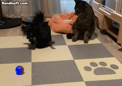 私はボストンテリアを飼ってるんですが、あまり散歩に連れていく時間もとれないので、BLING! BANG! BALLの事を聞いてちょうど良いと思い使わせてもらいました。普段からいたずら好きで吠え癖があってうるさい子で、かまってちゃんなので、ひとりであそんでくれるのか不安だったんですが、ボールの電源をつけるや否やLEDライトと動きに反応して、凄い勢いで飛びついてきて遊び出しました。(笑)
