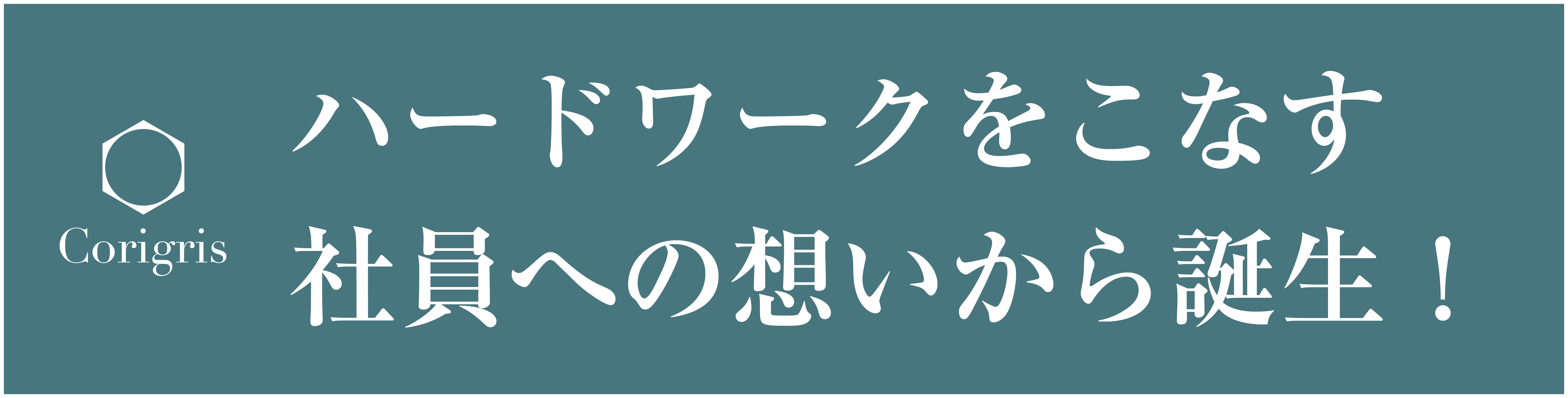厳しい条件下でハードな毎日を送る社員の方々の負担を少しでも軽減できるよう開発したマッサージクリーム【Corigris-コリグリ】が、多くの方々の活動的でイキイキとした毎日をサポートできる一商品となりました。