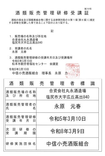 <酒類販売管理者標識>