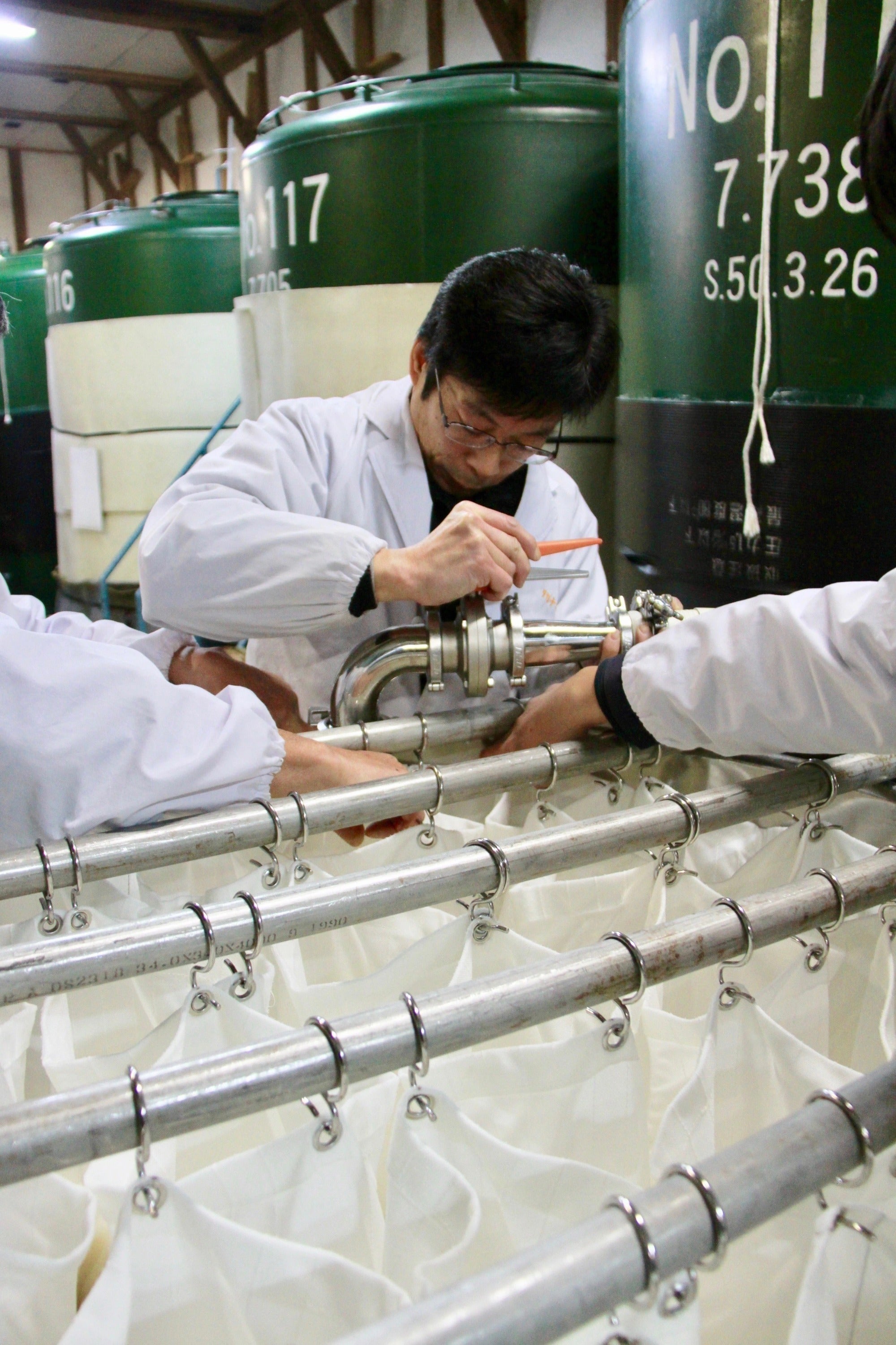 つるし搾りで絞った日本酒は、斗瓶に入れて、すぐに冷蔵庫に保管されます