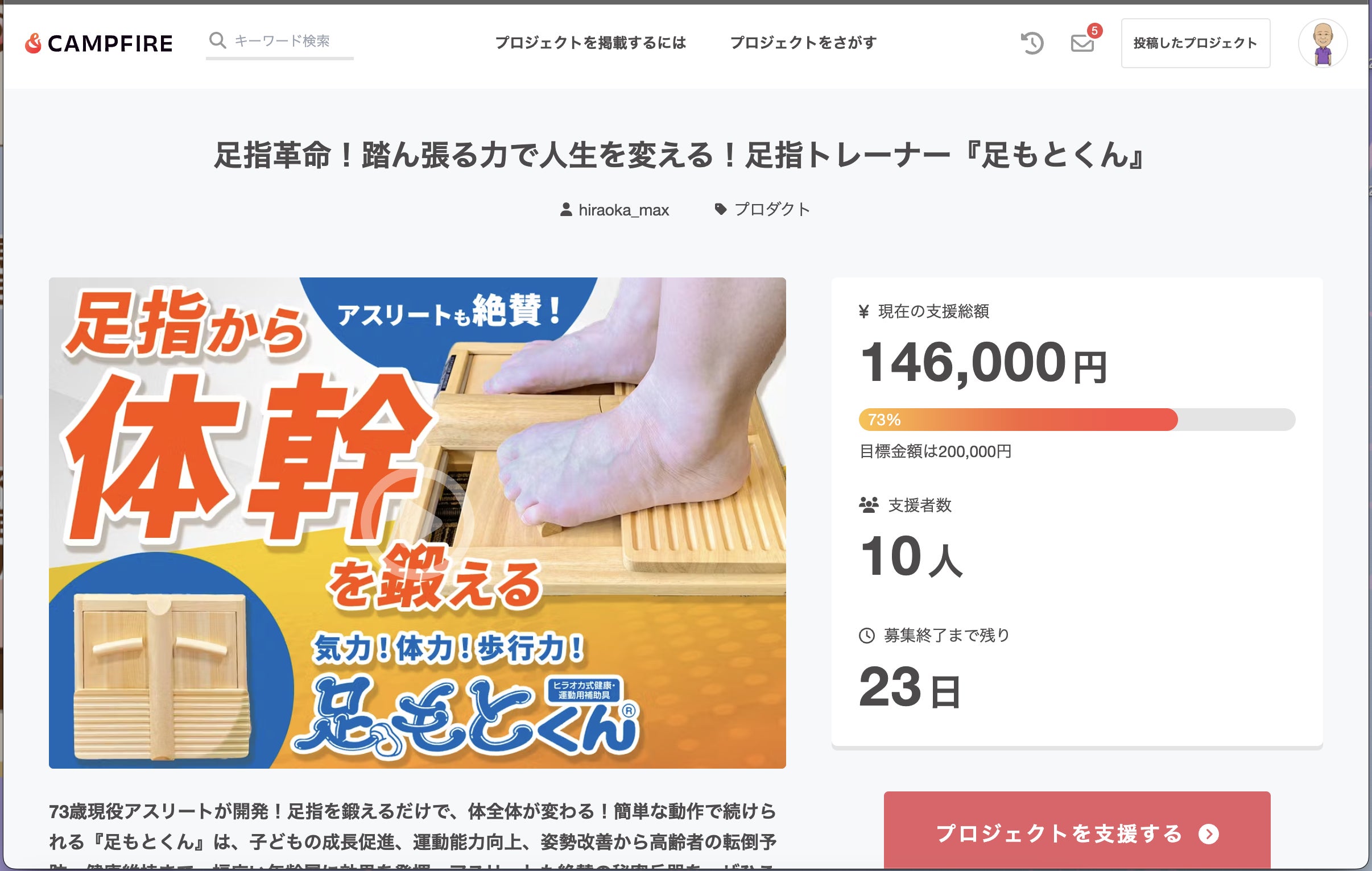 クラウドファンディング開始7日目で目標達成73%になりました!