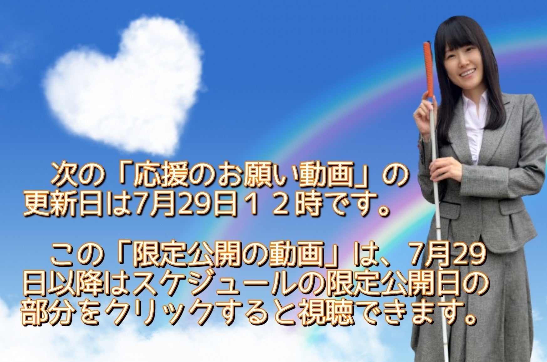 7月29日 メイン画面に「応援お願い動画」投稿 ※反映に1~2日かかります