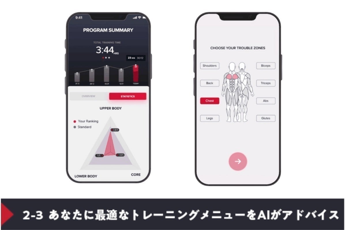 数値を記録することで効率的なトレーニングメニューの構成や目標管理をAIが行います。