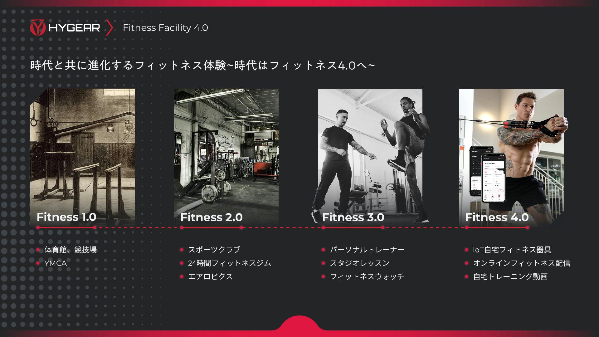 私たちHygearはこの段階をフィットネス4.0の時代ととらえ、時代の先端を進むブランドとしてGear1を開発しました。