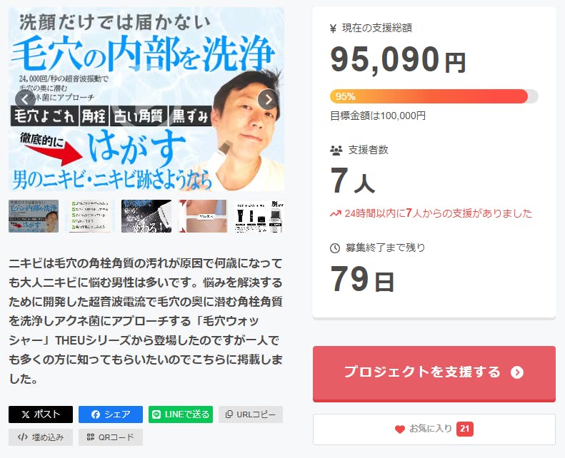 • たった今目標達成しました!ありがとうございます!!(^^)!ニキビ治したい人、ニキビ跡をなおしたい人には本当に効く「毛穴ウォッシャー」なのですが、やっぱりニキビに悩んでる大人ってあまりいないのかな~ と思ってた矢先に目標達成しました。目標達成まで10時間強かかりましたが感動しました( ;∀;)ご支援頂いた方々、本当にありがとうございました。慎んで御礼申し上げます。ちなみに美肌にだけ興味ある人にも有効なのはここだけの話です。すべすべへの最短距離なのです。引き続き宜しくお願いします。広報担当 平一平(たいらいっぺい) もっと見る