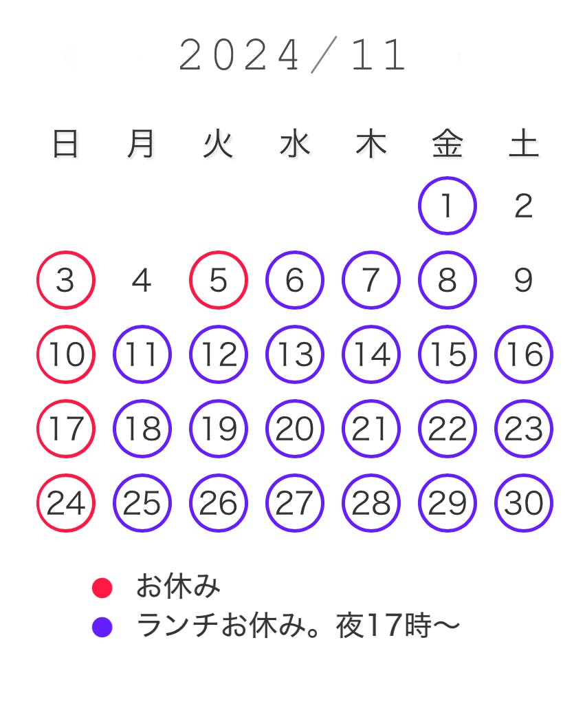 11月のランチは2日.4日.9日の3日間です。