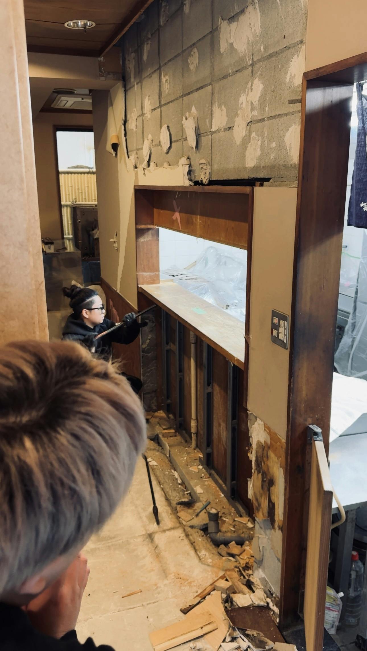 改装工事は1階だから2階はお客さん入店可能なので休まず営業します!