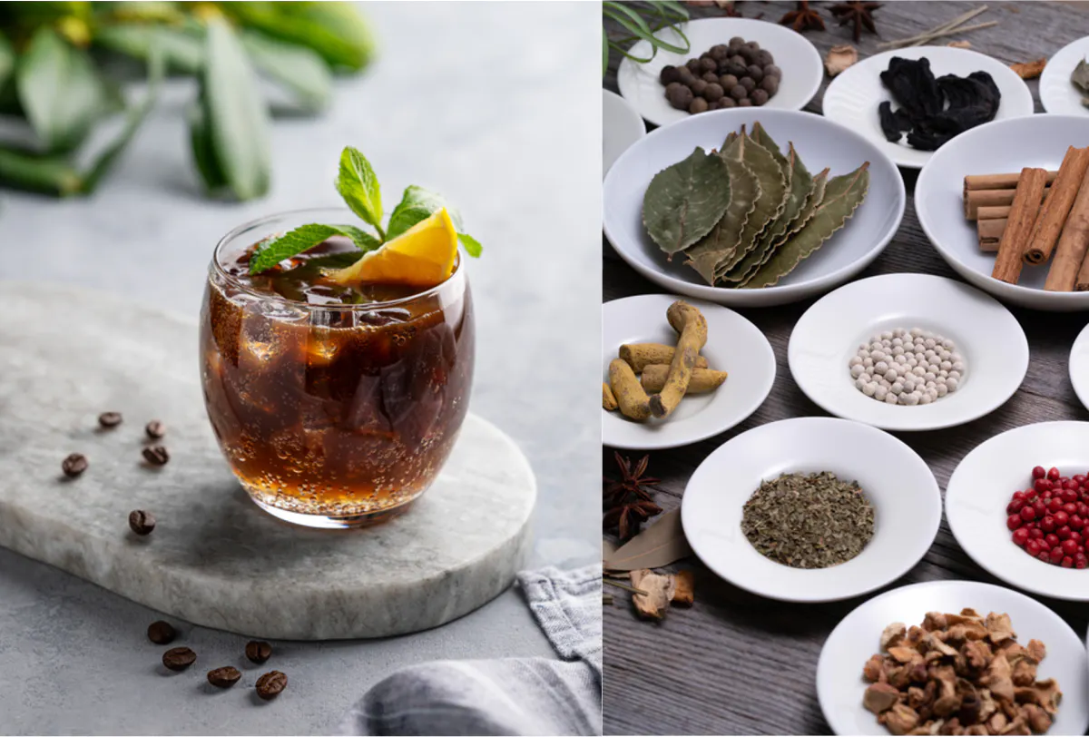 花園クラフトコーラが作るスパイスの調合、レモン/ライムなどの果実の配合、出来上がり色などお好みのクラフトコーラを設計から熟成まで一緒に作成します。