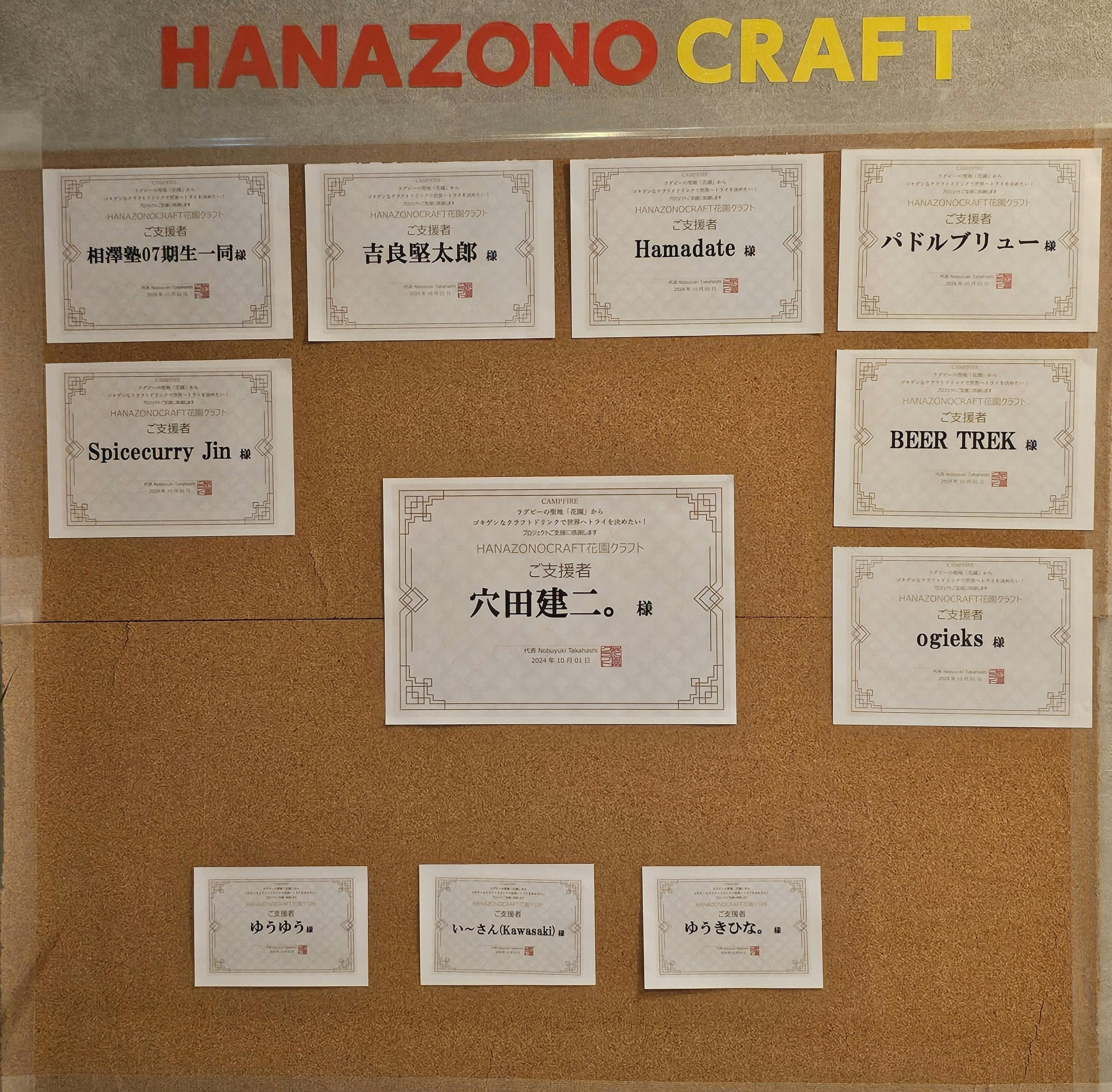 2024/10/07 10:47店舗の壁HPに支援者様のお名前掲載「店舗の壁、HPに、支援者様のお名前」をリターンとしてご支援いただき、誠にありがとうございます。皆様からの温かいご支援により、無事にプロジェクトを完了することができました。10月6日より「店舗の壁面にお名前」を掲載させていただきました。また、ホームページのトップにも同様にお名前の掲載をさせていただいております。https://www.hanazonocraft.comブラウザ機能ではありますが、「画像の保存」または「画像をダウンロード」を可能とさせていただいております。お気軽にダウンロードしていただければと思います。これは、皆様のご厚意が形として残り、私たちの店舗に足を運んでくださる方々に、皆様のご支援がどれほど大きな力となったかを伝えるものです。改めて感謝申し上げますとともに、今後も皆様のご期待に応えられるよう努めてまいりますので、引き続きご愛顧賜りますようお願い申し上げます。2024/10/07HANAZONOCRAFT花園クラフト高橋伸介 もっと見る
