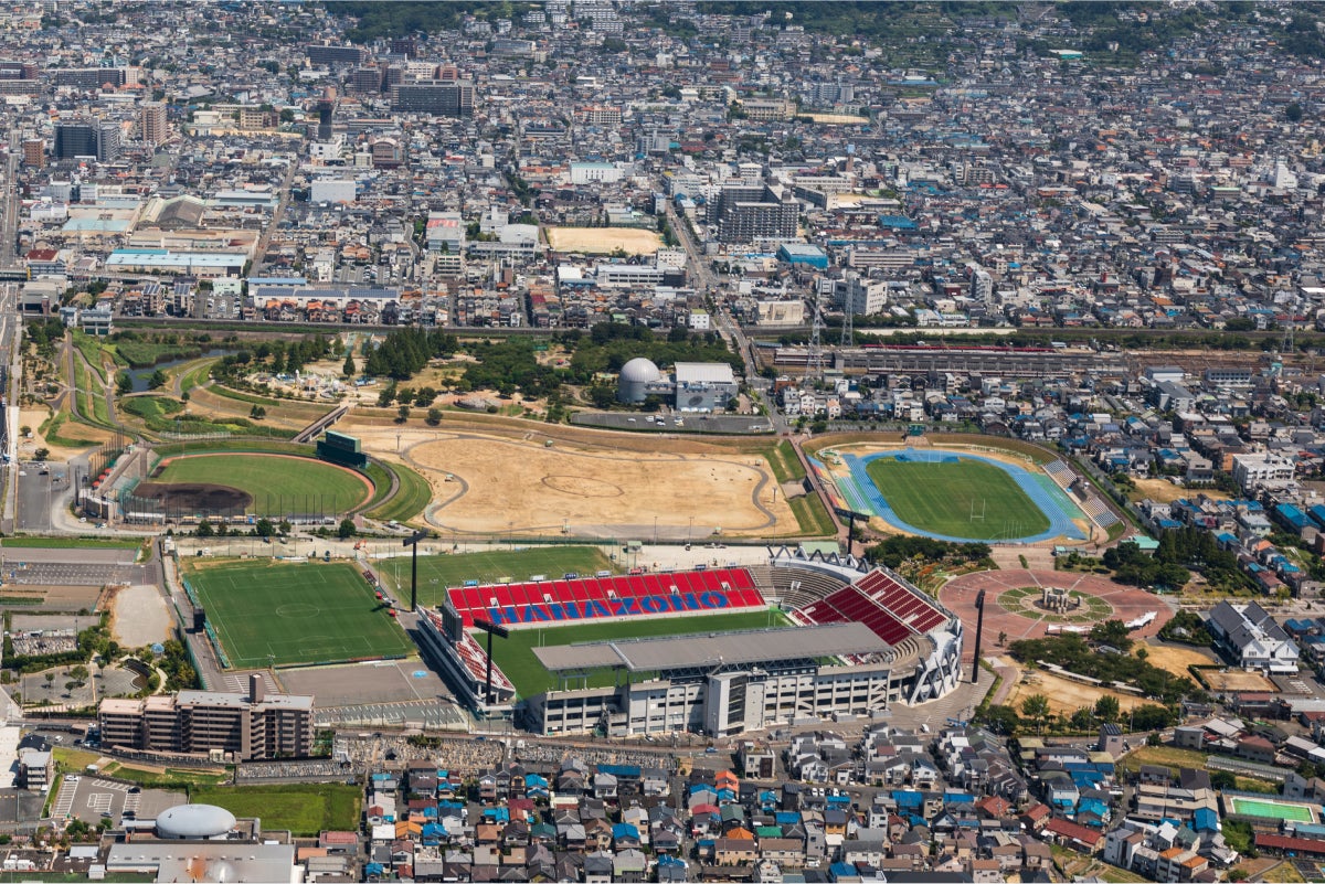 大阪府東大阪市にある「花園ラグビー場」。スポーツファンやラガーマンの間では「ラグビーの聖地」として有名です。近年さらに野球場、陸上競技施設が整備され総合スポーツ施設に進化しています。
