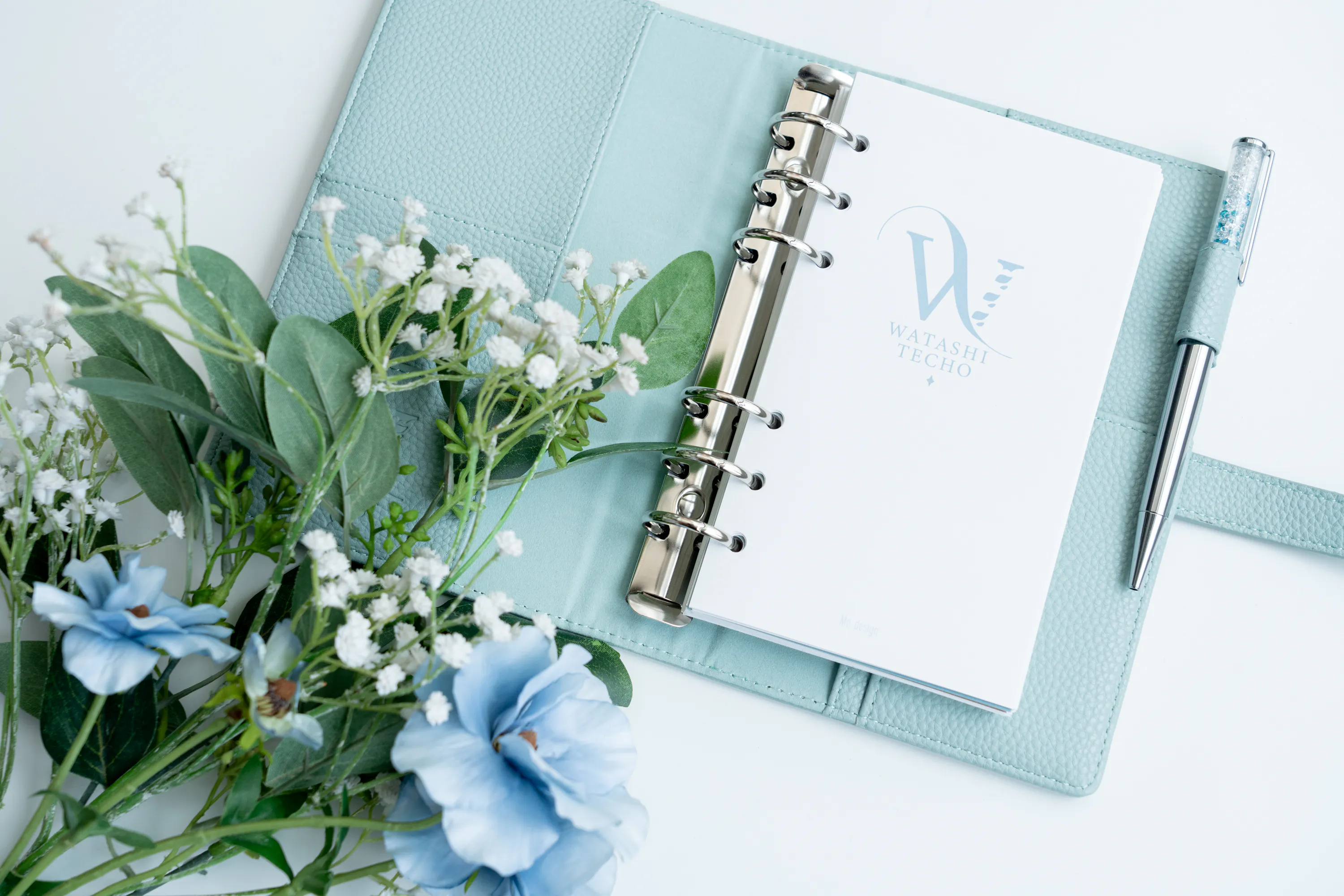 わたし手帳は、バインダーとリフィルを組み合わせて使うシステム手帳です。自分の使い方に合わせて、自由にカスタマイズできるのが最大の特徴!ページの順番を入れ替えたり、不要なページは抜いて軽量化できたり、専用の穴あけパンチがあれば、ポストカードや推しの写真など、好きなものをなんでも詰め込めます^^