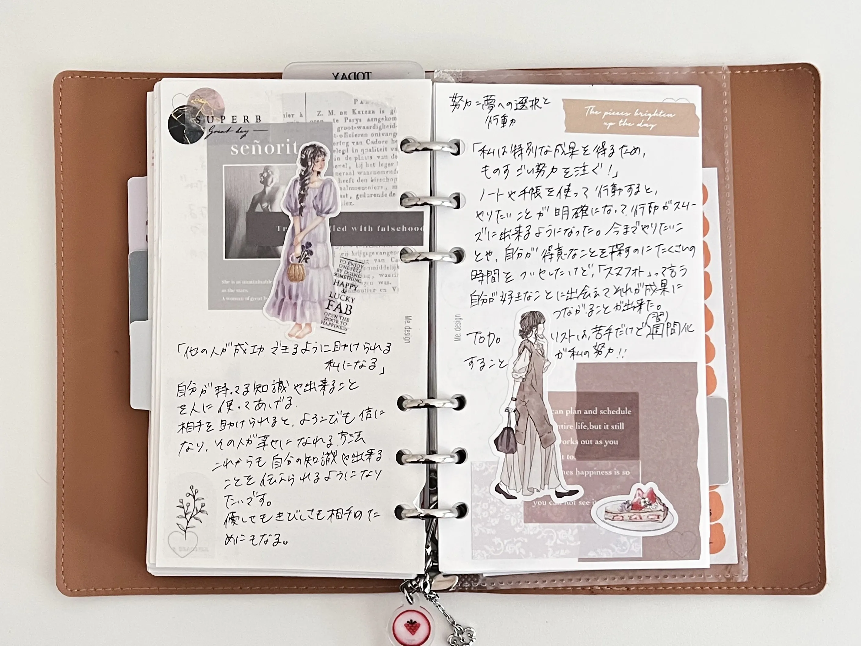 メモページをビジョンボードとして使うと色々貼れるし、何度も見れて、リフィルを追加して更新できるところがとっても◎!しかもページが可愛いところもポイント!