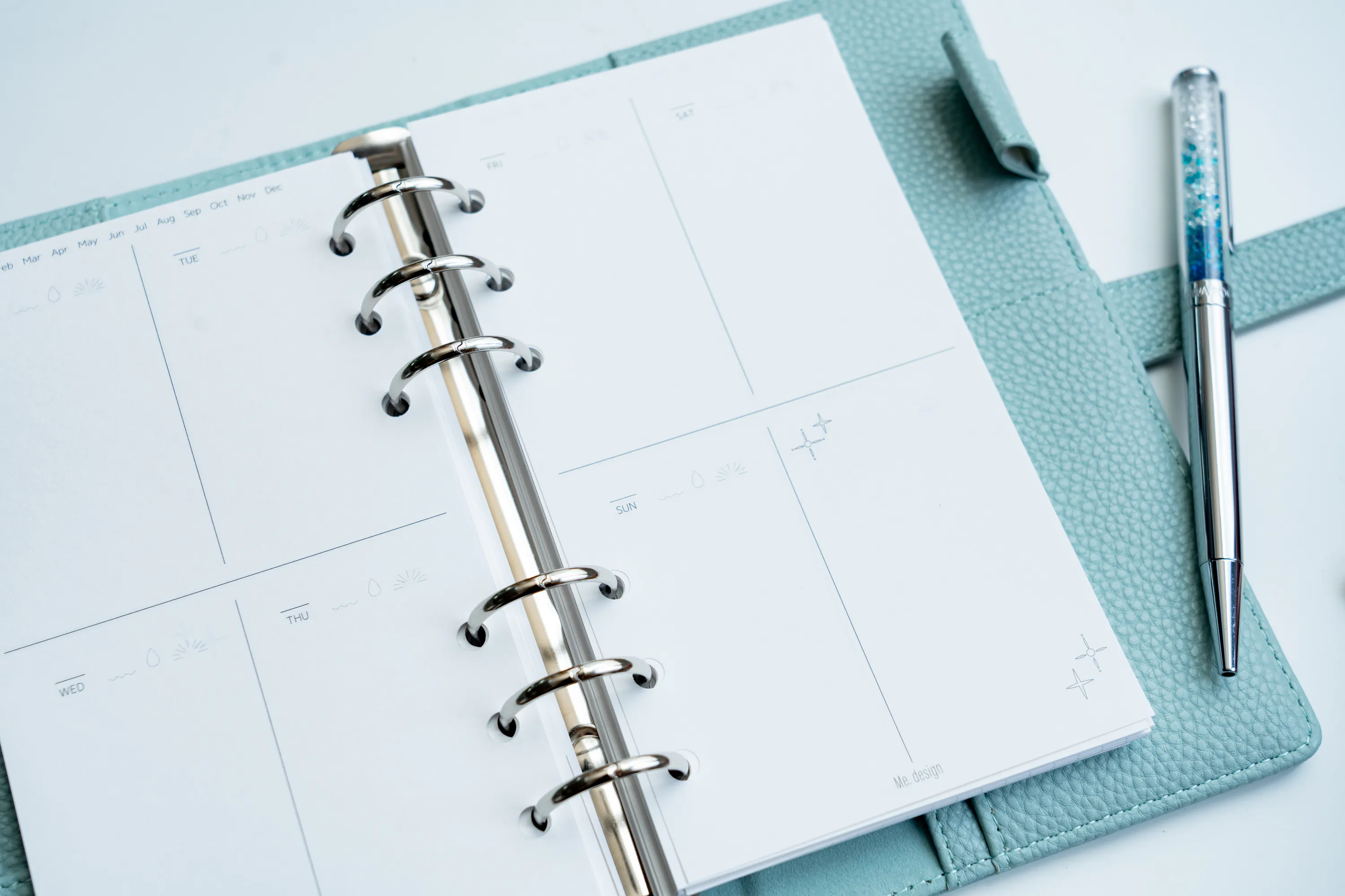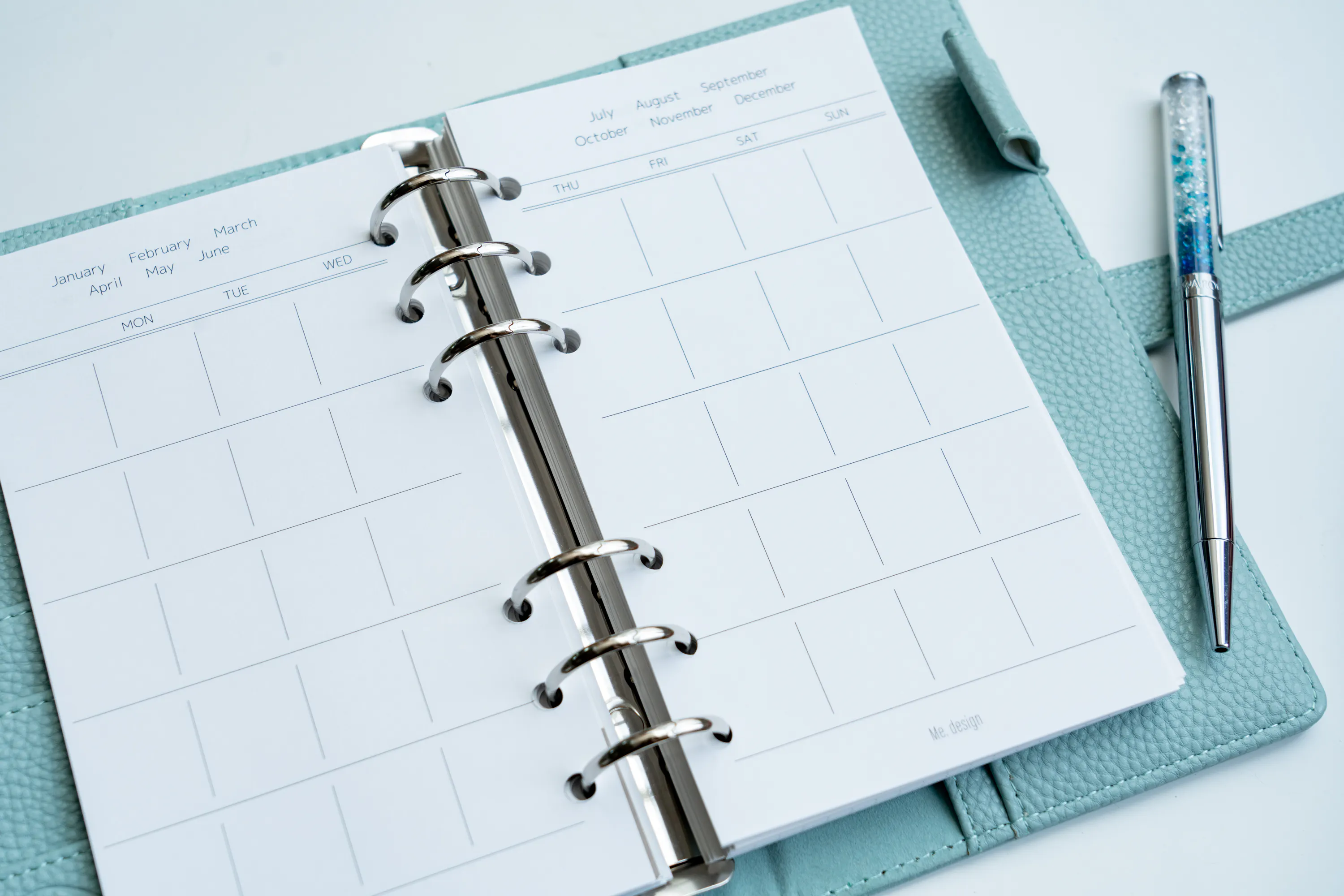 わたし手帳は、ご自身のライフスタイルに合わせてスタート月を自由に選べるように、日付フリータイプとしています。 手帳が白紙になってしまうと一気にモチベーションが下がってしまうという方も空白をつくらずに再開できますし、いろんな手帳のいいとこどりをしたい!という、手帳複数使いさんにも好評です!
