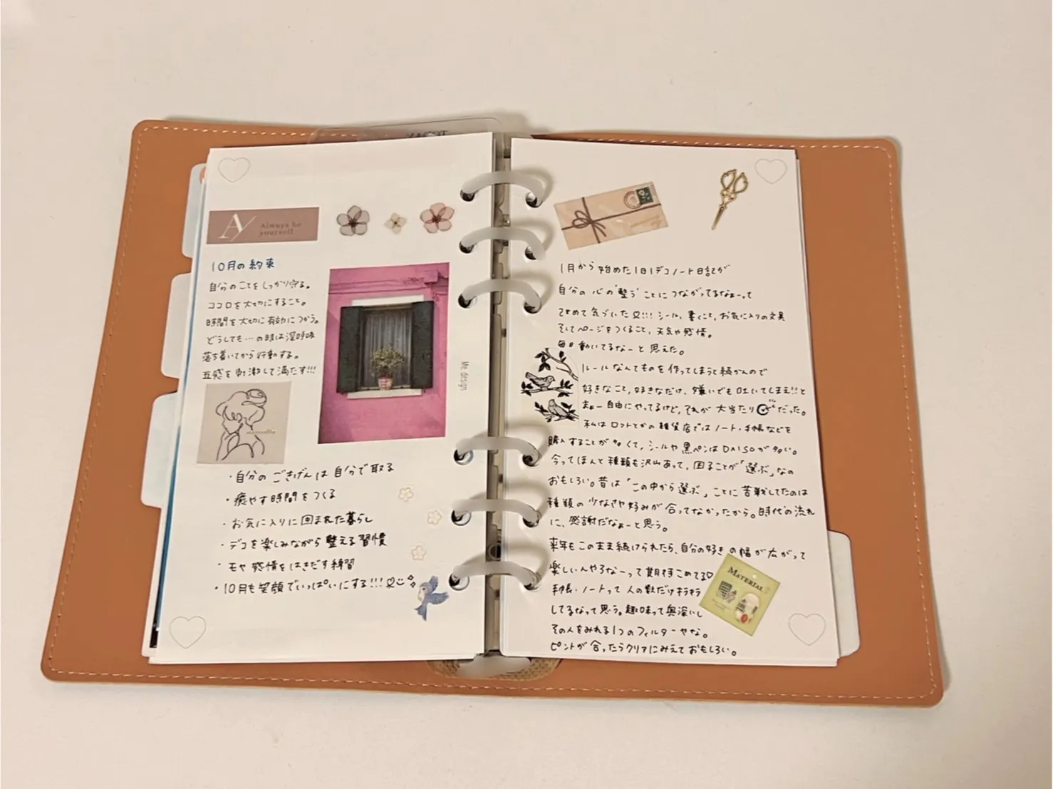 ─わたし手帳のお気に入りポイントは、わたしを育てる手帳の名の通り、ワークを通して自分の事を知りながら、自分らしさを育てていけるところ。 システム手帳だから、自由にカスタマイズできたり、使っているうちに自分らしく色々オリジナルな使い方ができるところが気に入っています。 (まりさん)