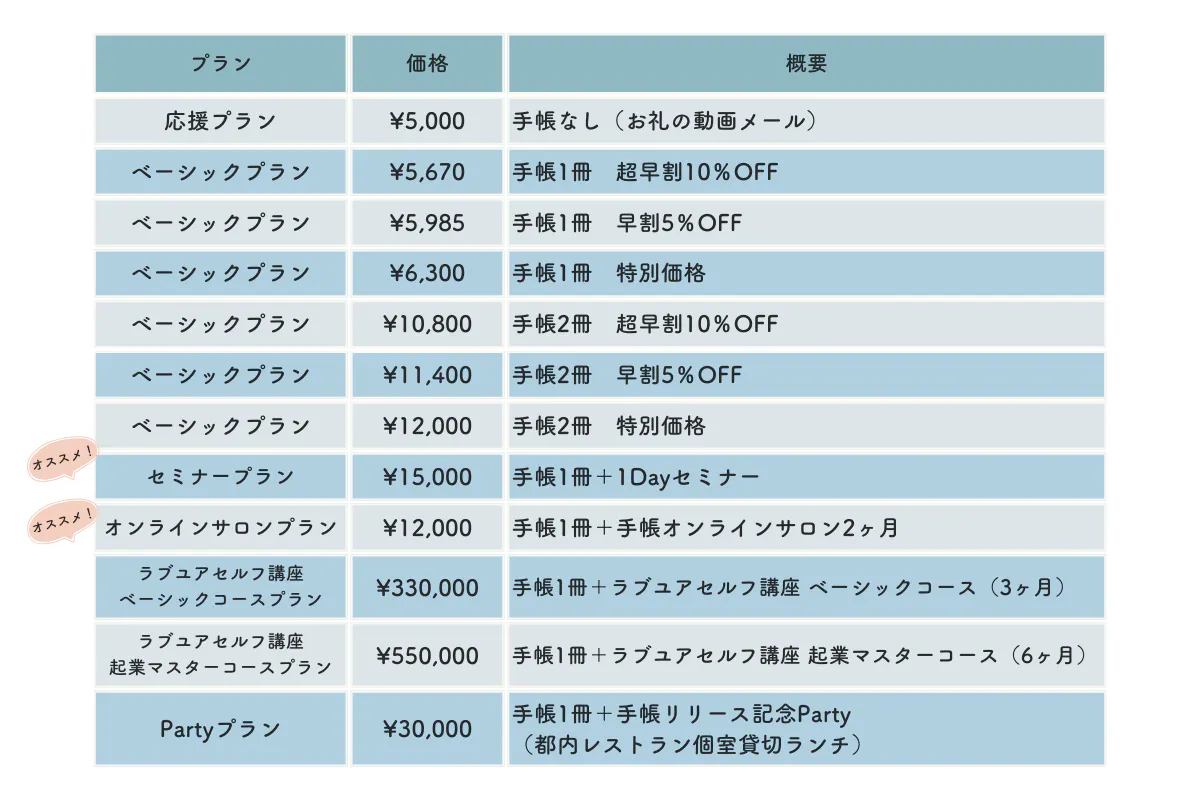 応援プランには手帳がつきませんのでご注意ください。