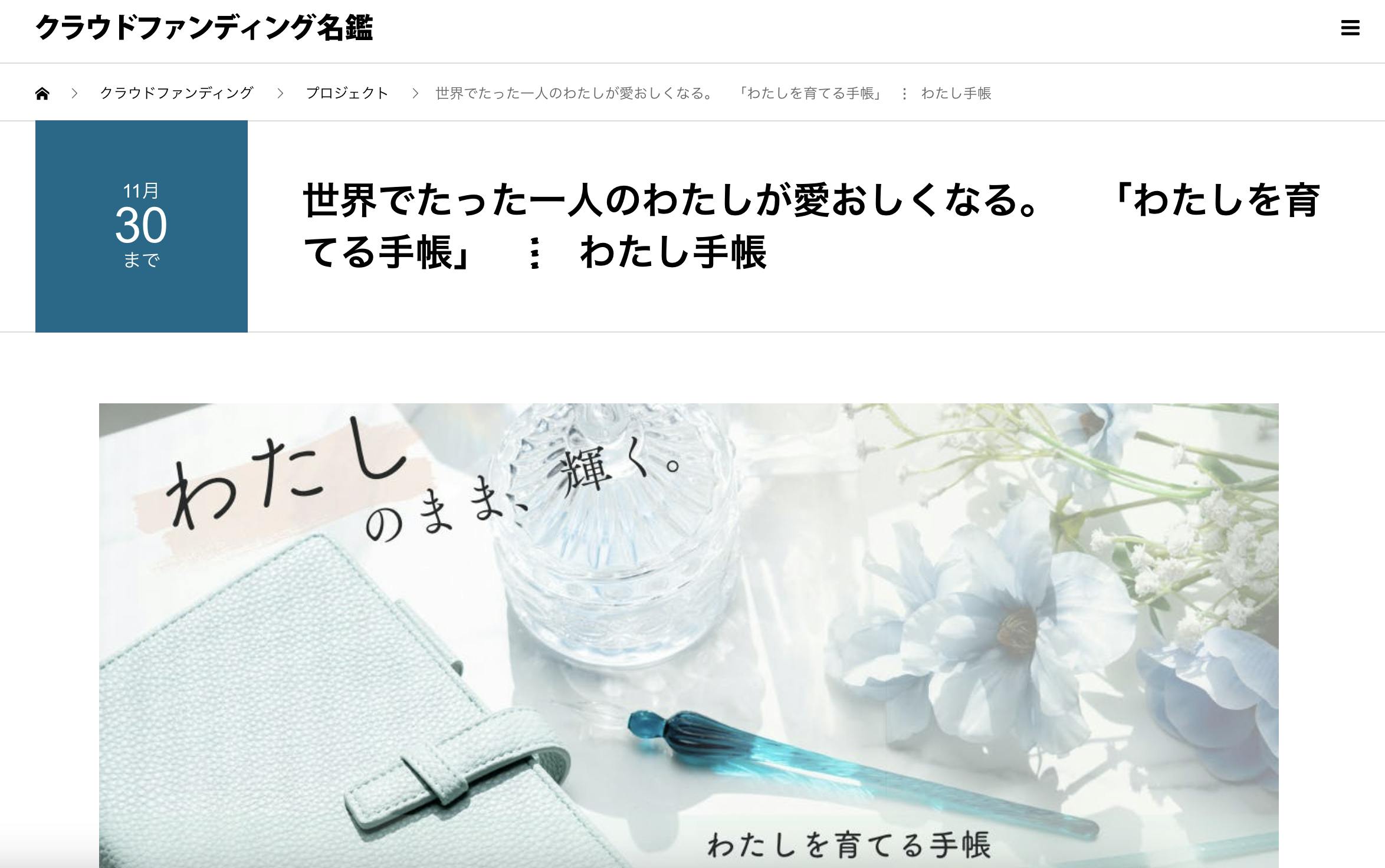 この度、『クラウドファンディング名鑑』さまからお声がけをいただき、わたし手帳のクラファンチャレンジをご掲載いただきました^^!