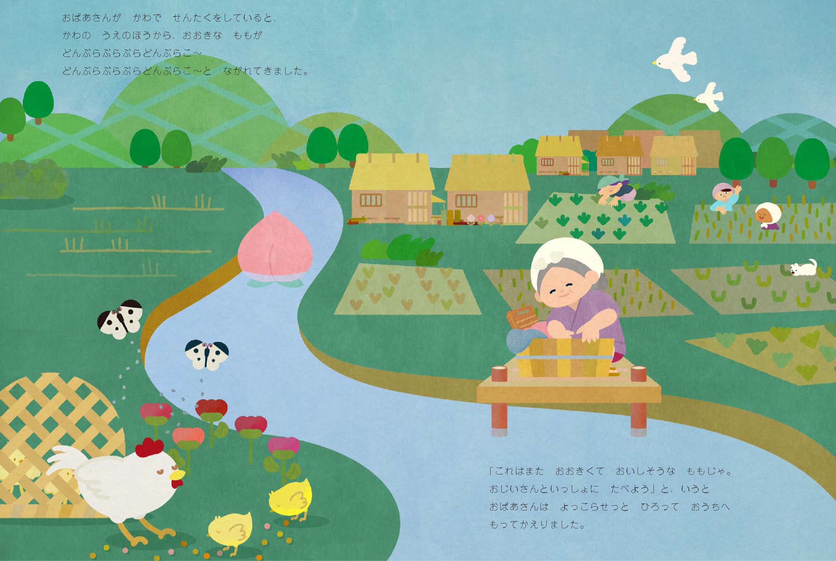 男の子は「ももたろう」女の子は「ももひめ」になり、男女とも楽しめる内容です。