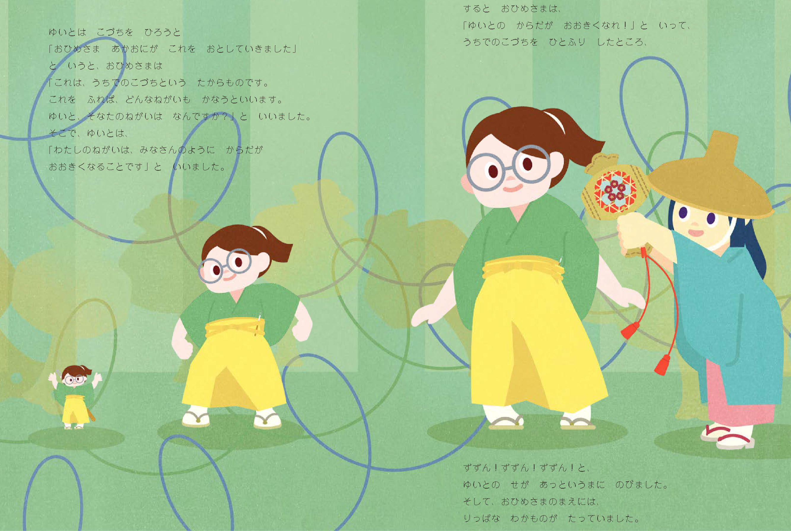 日本昔話の主人公になれる、この絵本をもらった子供たちが成長して、いろんな人生の壁に行きついた時、記憶に残っていたこの絵本を開き、当時の気持ちや暖かいメッセージを見ることで新たな一歩が踏み出せたらいいなと願ってます。