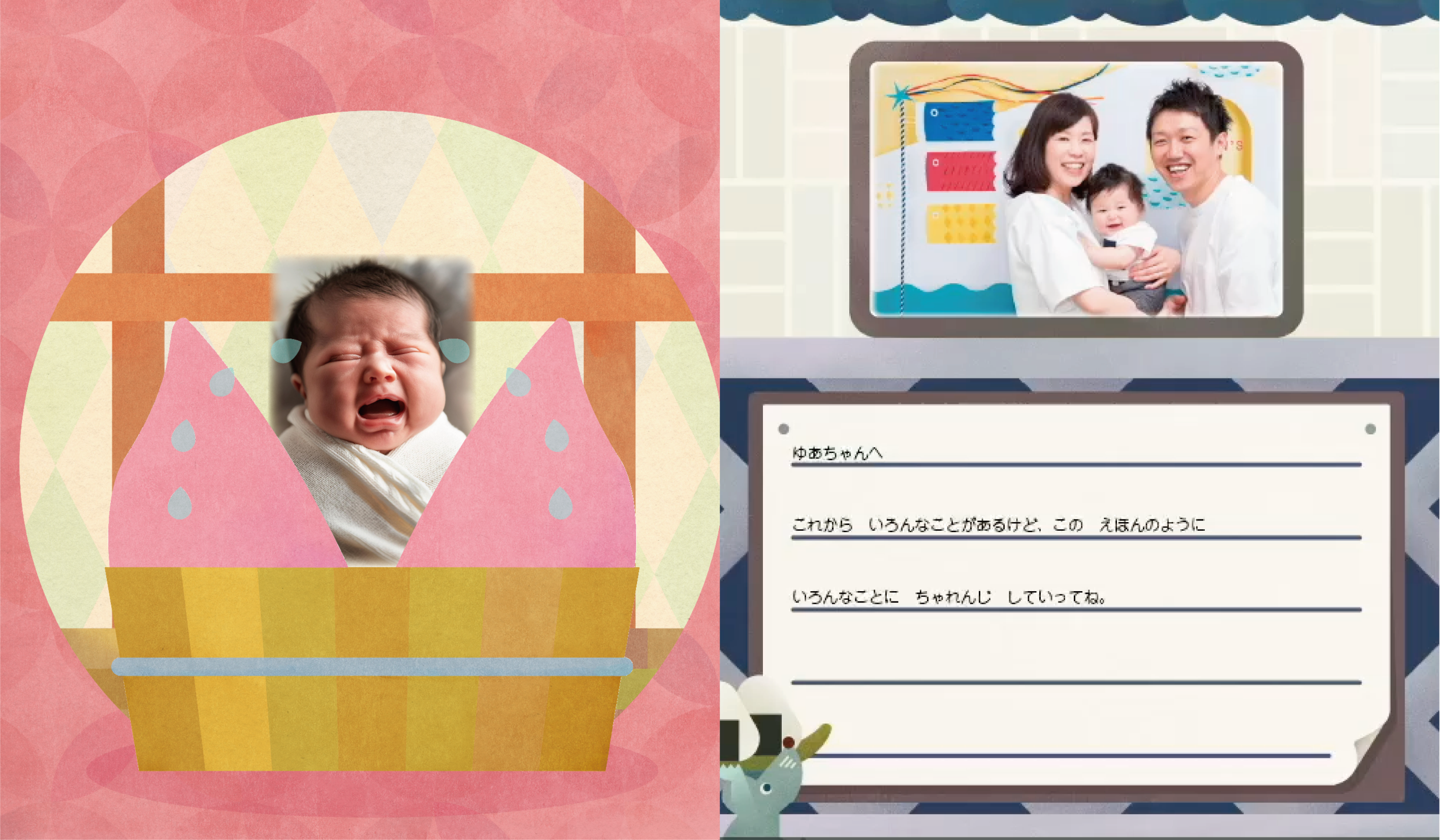お子さんの写真と心を込めたメッセージを挿入