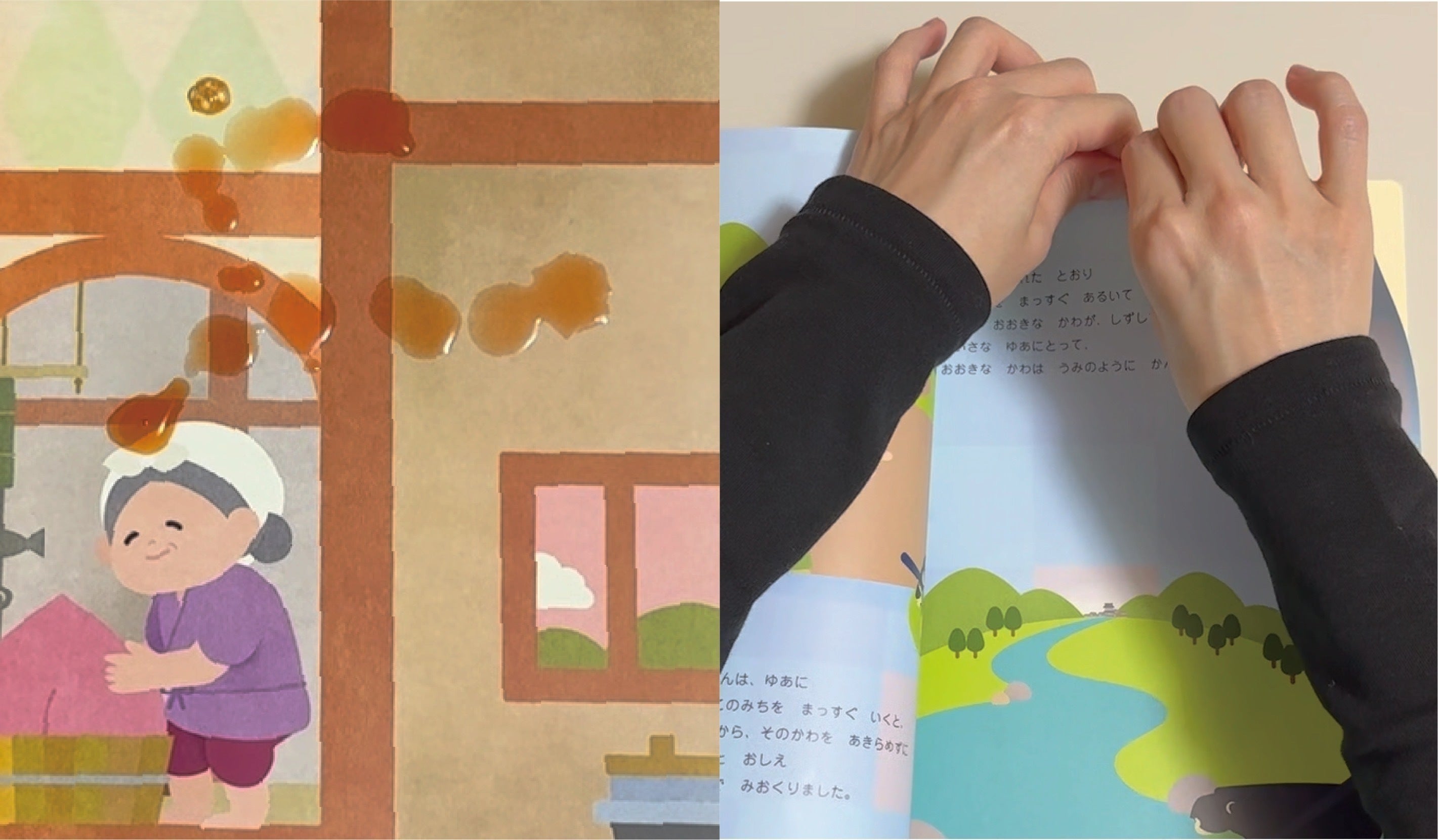 私も娘に小さい頃からいろいろな絵本を買いました。ただ子供ってどんな絵本でも噛んだり破ったりして、すぐボロボロにするんですよね(笑)そこでJibunEHONでは、合成紙YUPOを使うようにしました。この合成紙は、耐水なのでジュースなど、こぼしてもサッと拭くだけでキレイになりますし、お風呂でも読めます。そして、大人でも破くことができません。また、通常の本に比べ軽量でお出かけなど持ち歩きに便利です。さらに有害物質を使用してないので安心して長期間楽しんでいただけます。
