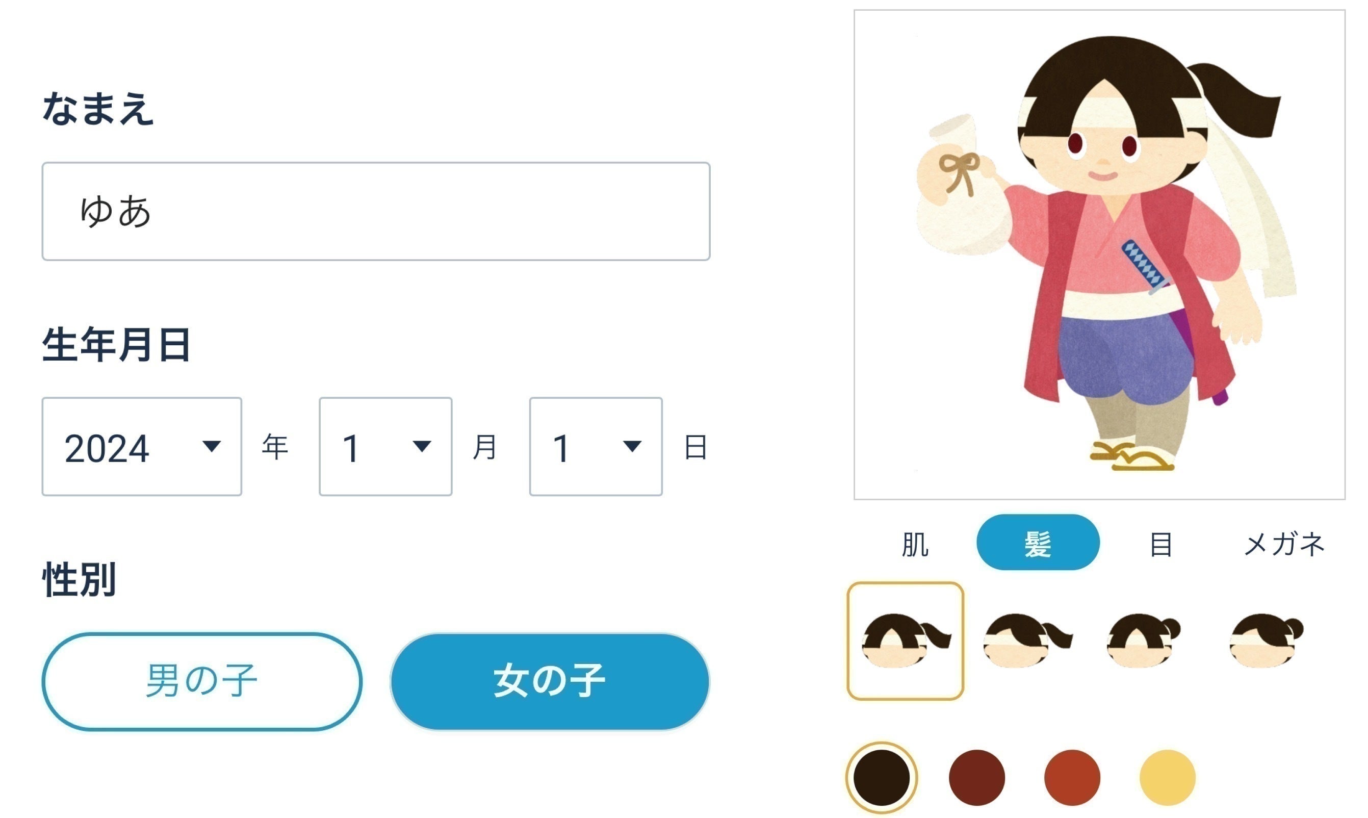 主人公の名前と容姿をカスタマイズ