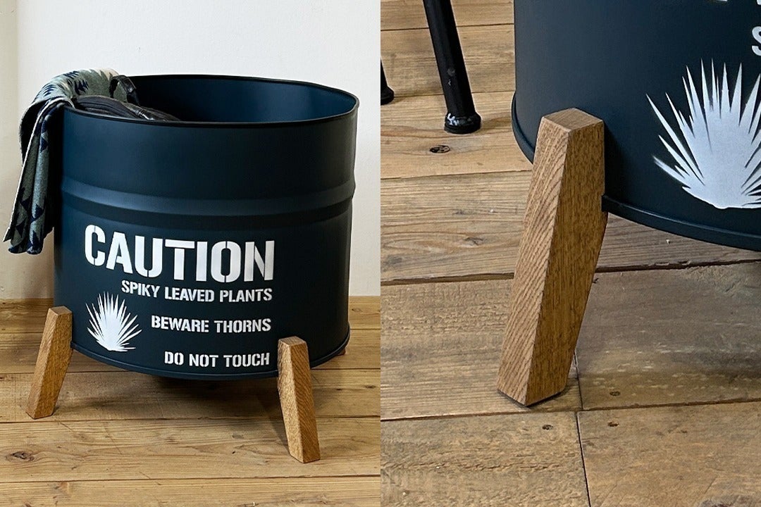 脚には、固い楢材を使用し、凹凸を付けドラム缶本体に沿うように作り、耐荷重を高めております。塗料は、高級なガラス塗料を施すことにより屋外での使用でも、長く使えるようにしております。