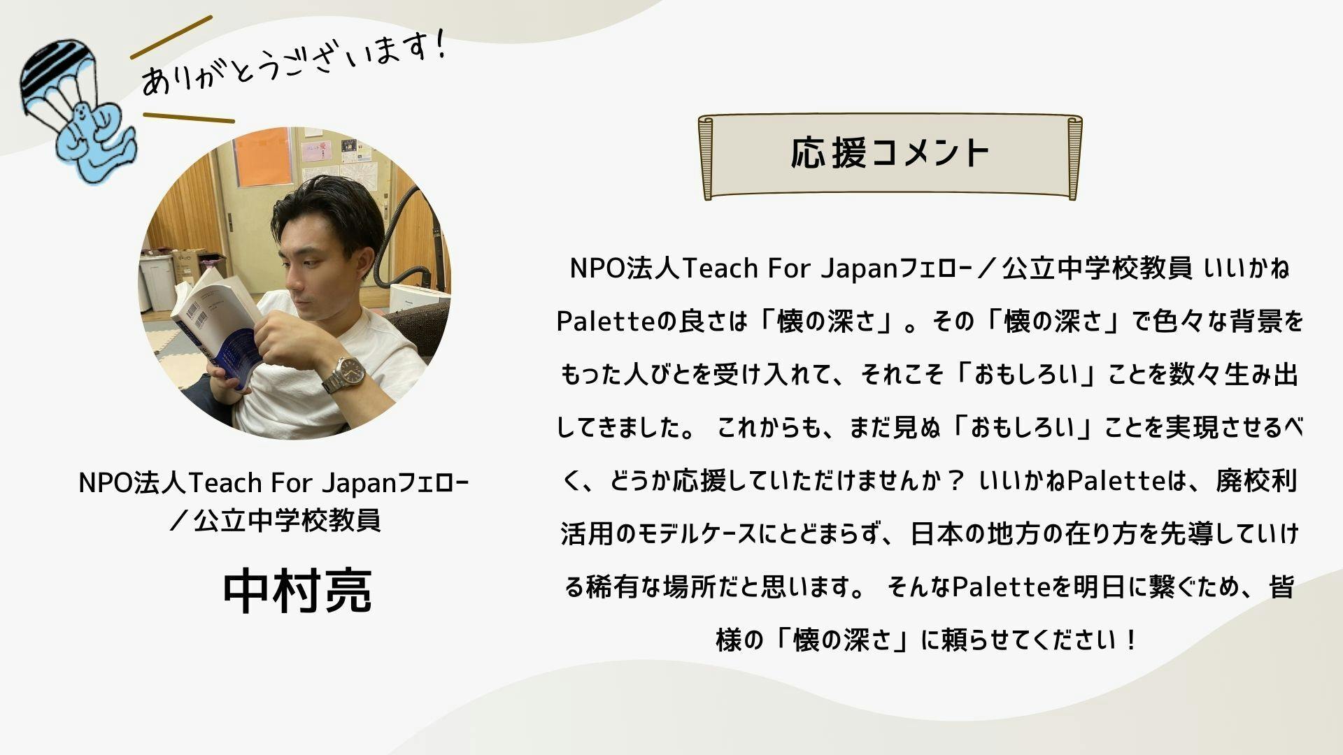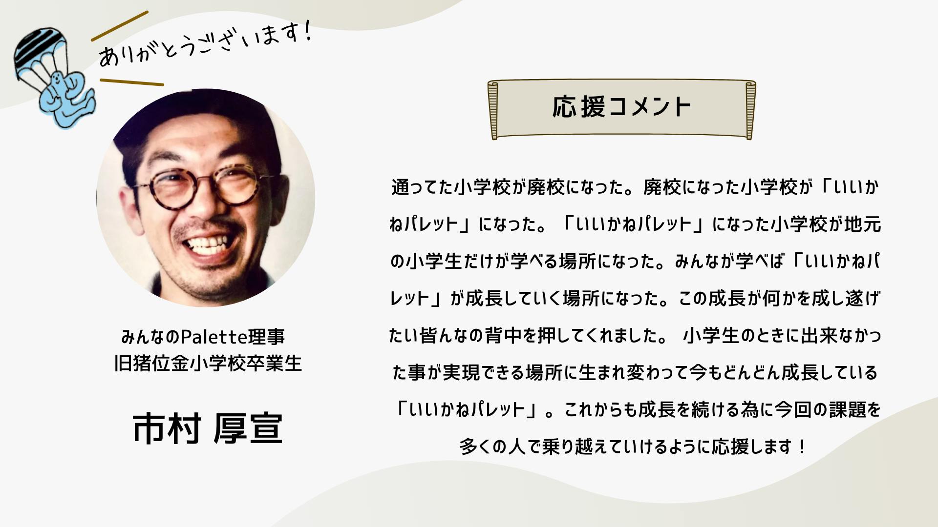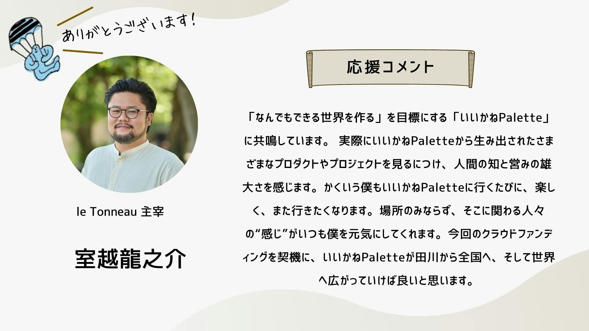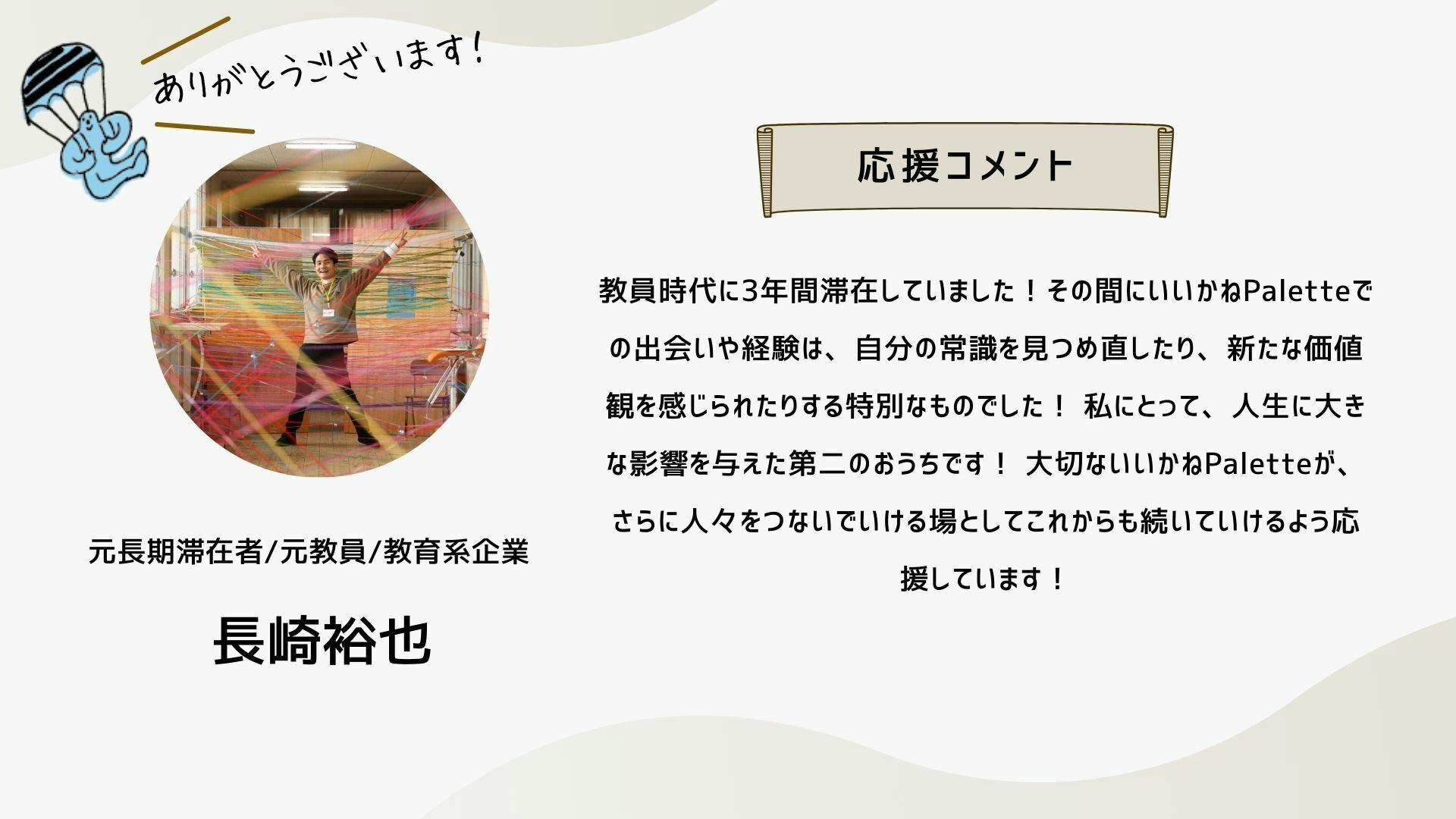 このクラファンは、もはやひとつの「活動」ではなく、「ムーブメント」のフェーズに来ていると思っています。この運動の輪が広がり、いいかねPaletteのような場所がもっともっと社会に増えていくために。どうか引き続きお力添えのほど何卒よろしくお願いいたします。