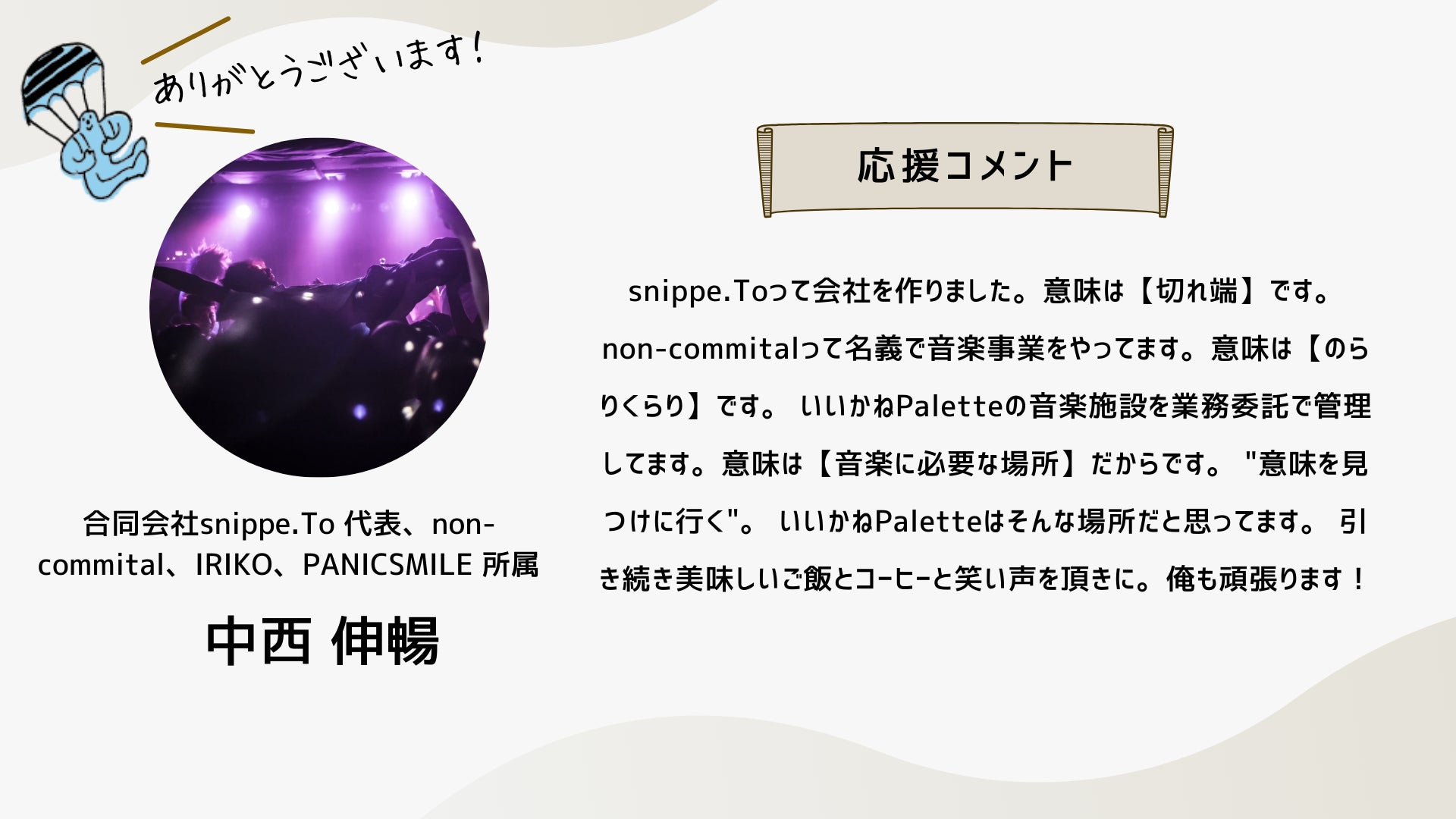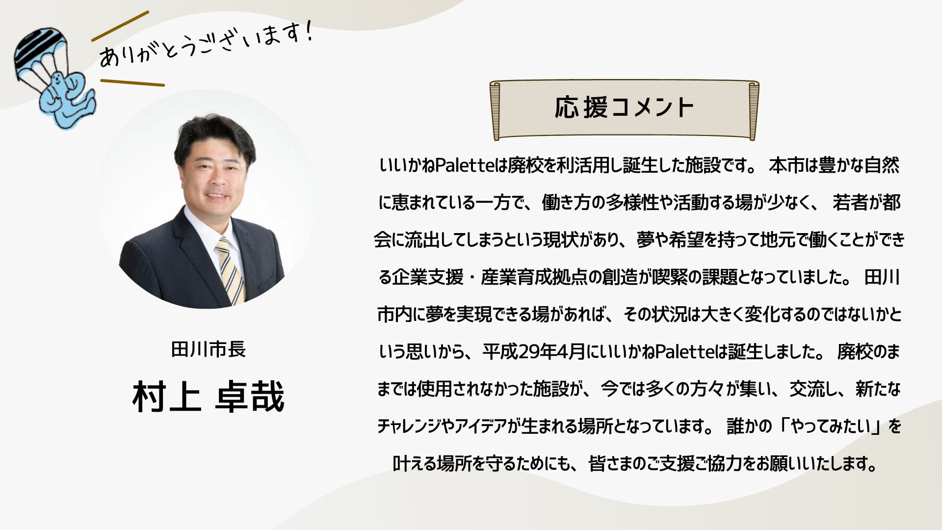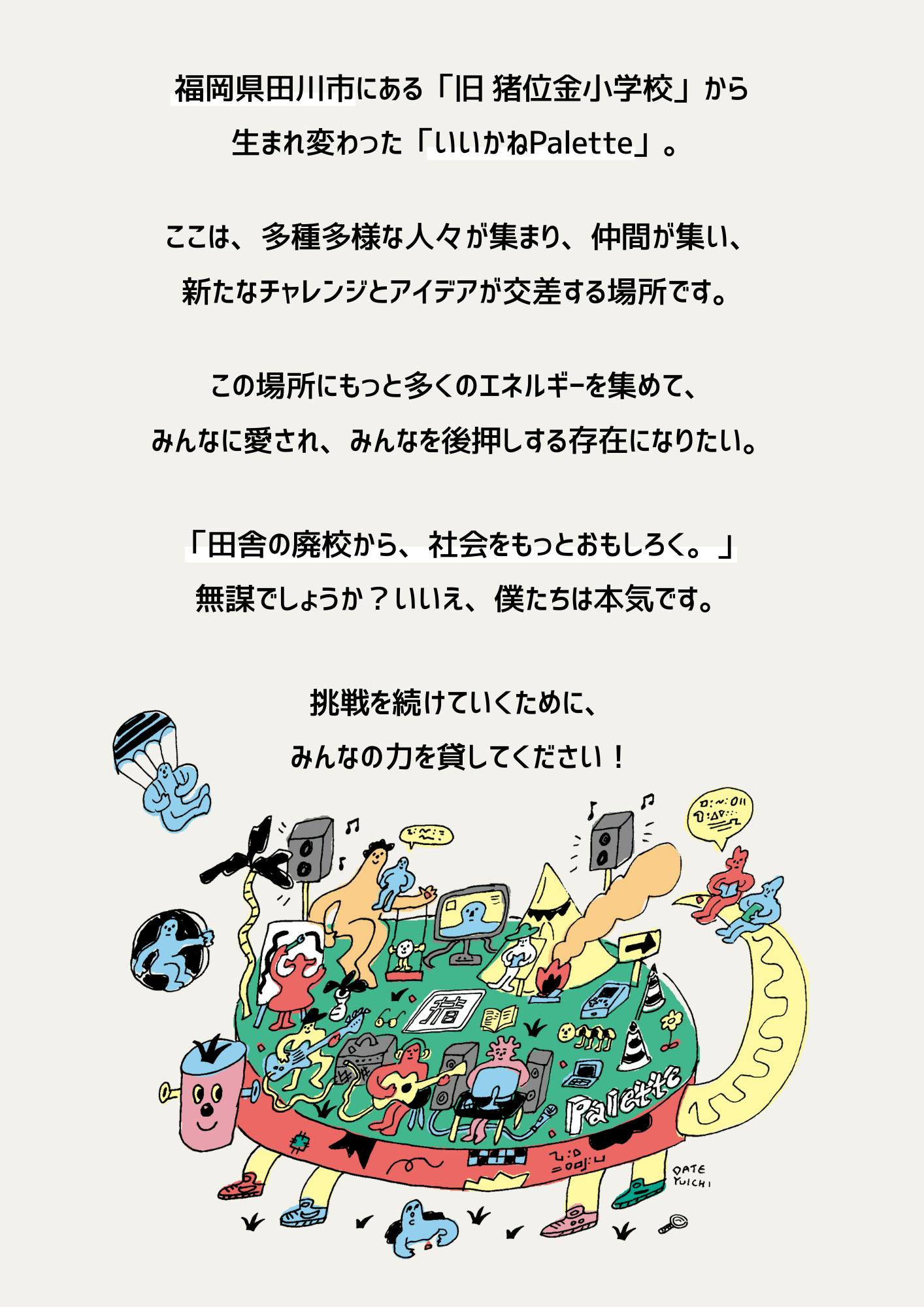 みなさんの力をお借りし、「なんでもできる世界」いいかねPaletteの可能性を拡げたいと思っています。