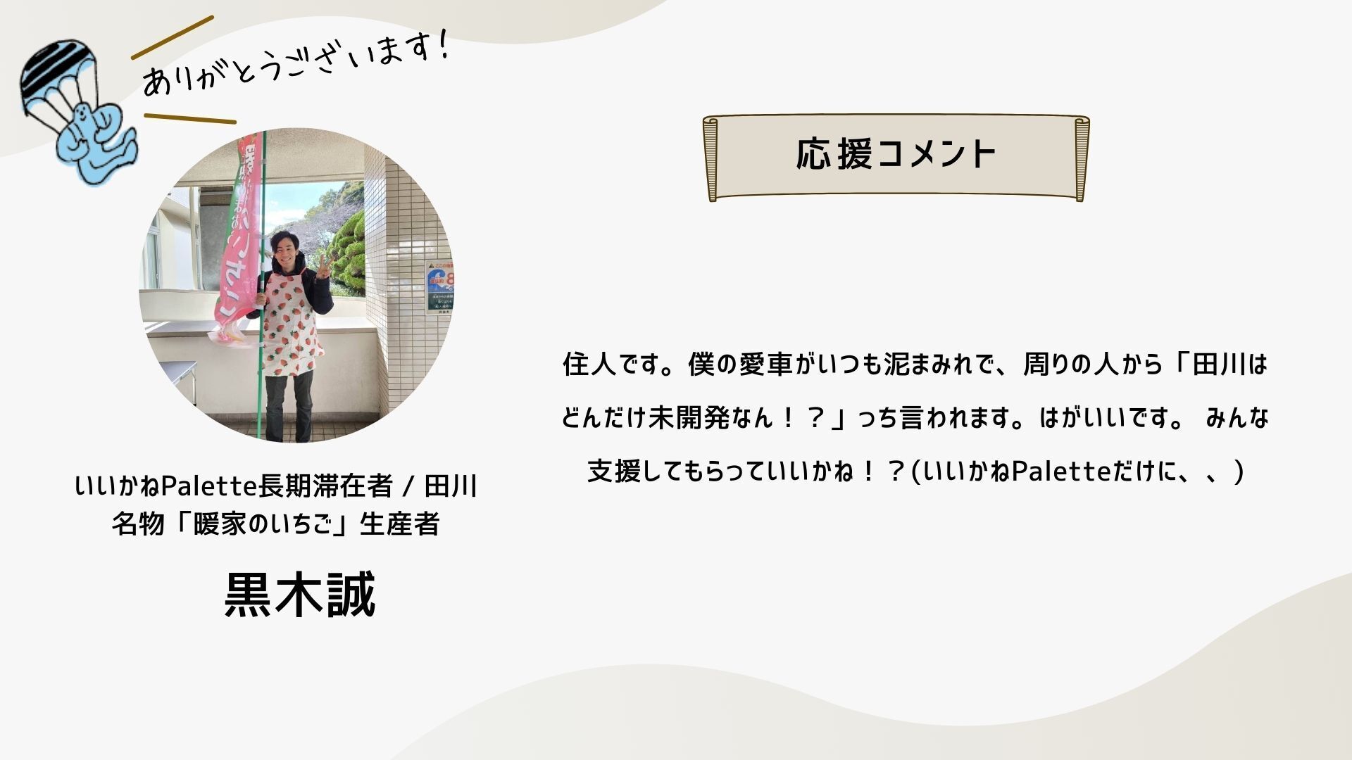 ついに、あの方から応援コメントが届きました!