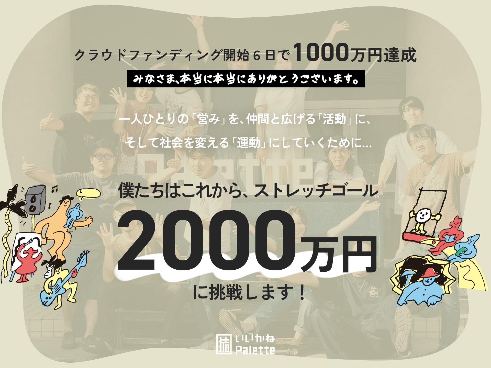 いいかねPaletteは、ネクストゴールの先、ストレッチゴールの2000万円にチャレンジしてます!