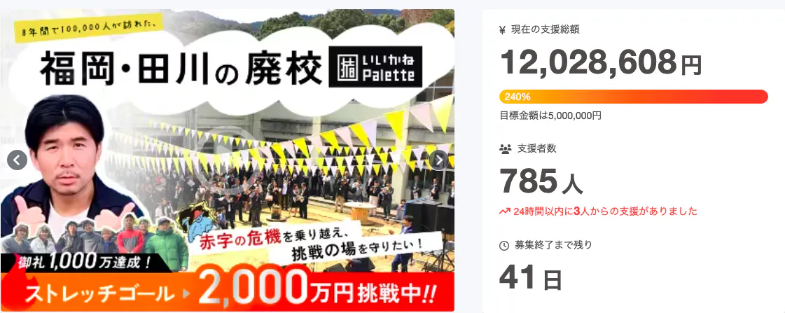 2024年9月3日21:00時点で12,028,608円、延べ785人の方にご支援を頂いています!!!!!