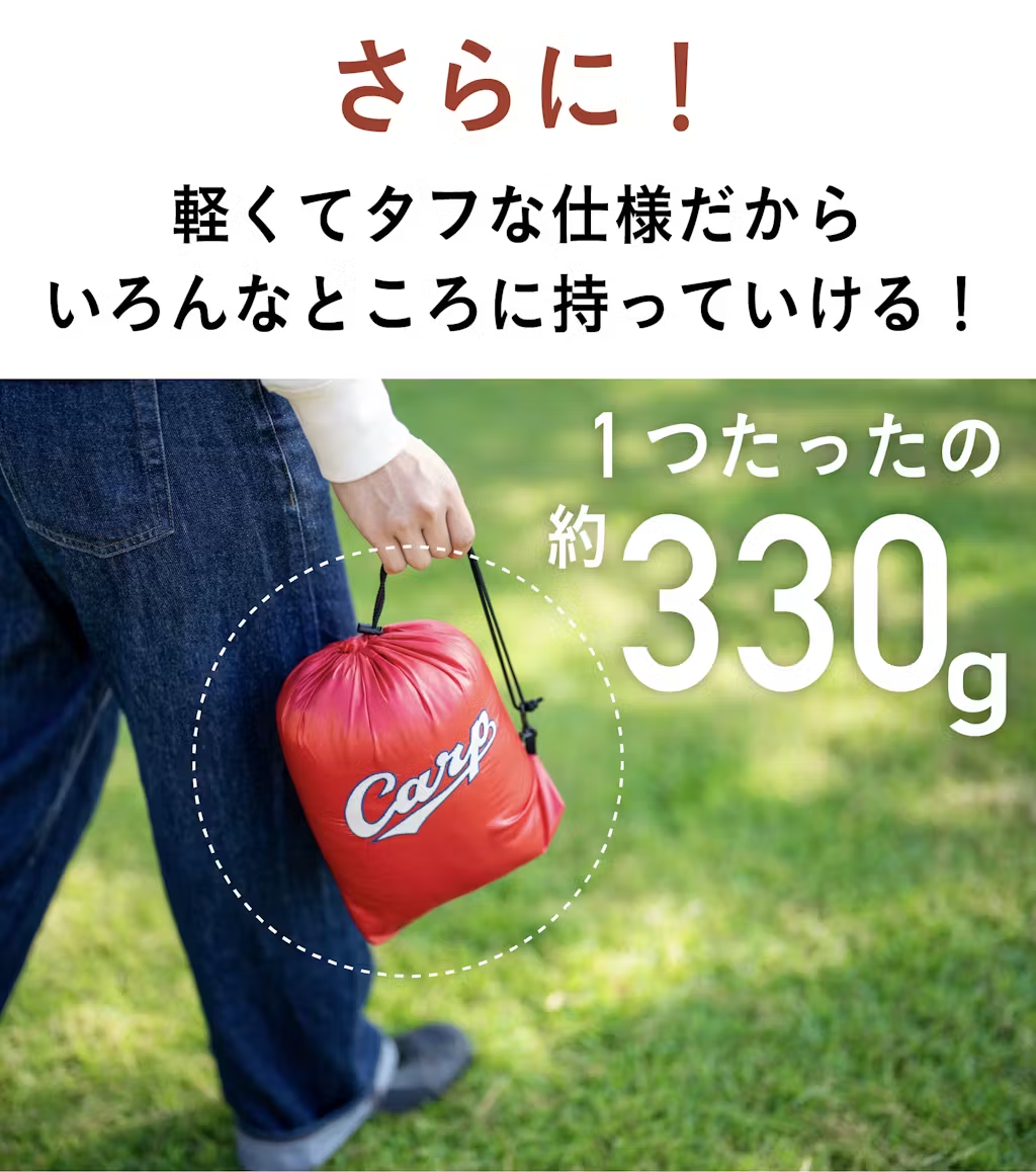 とっても軽く、暖かく、どこでも便利に使える今までにないアウトドアギアで、カープ全力応援!!