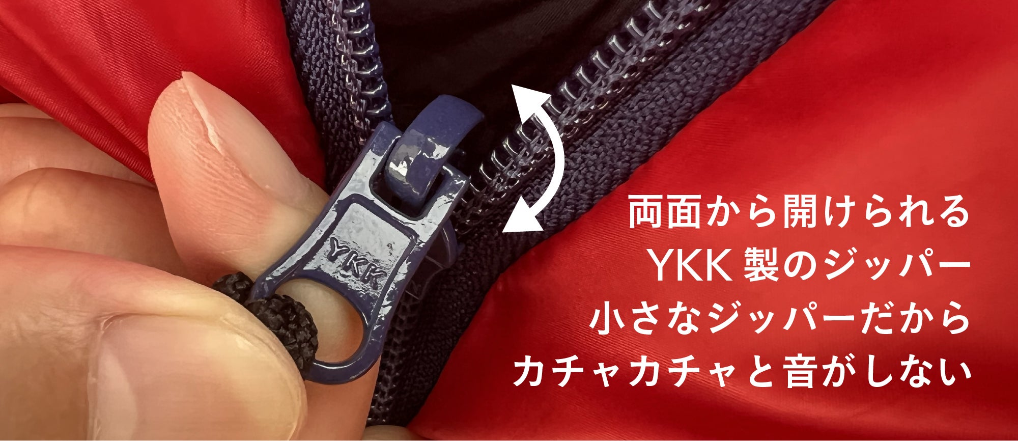 ジッパーは安心のYKK製。両面から開けられるジッパー設計で、何枚も繋げて大きな一枚として使うことも可能です!