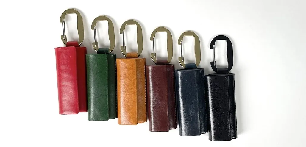 前作はブラック1色でしたが、支援者の皆様からの要望を受けて全6色にカラーバリエーションを増やしました。付属のカラビナは、ブラックのみが同色のブラック、他のカラーは真鍮ゴールドを採用しています。